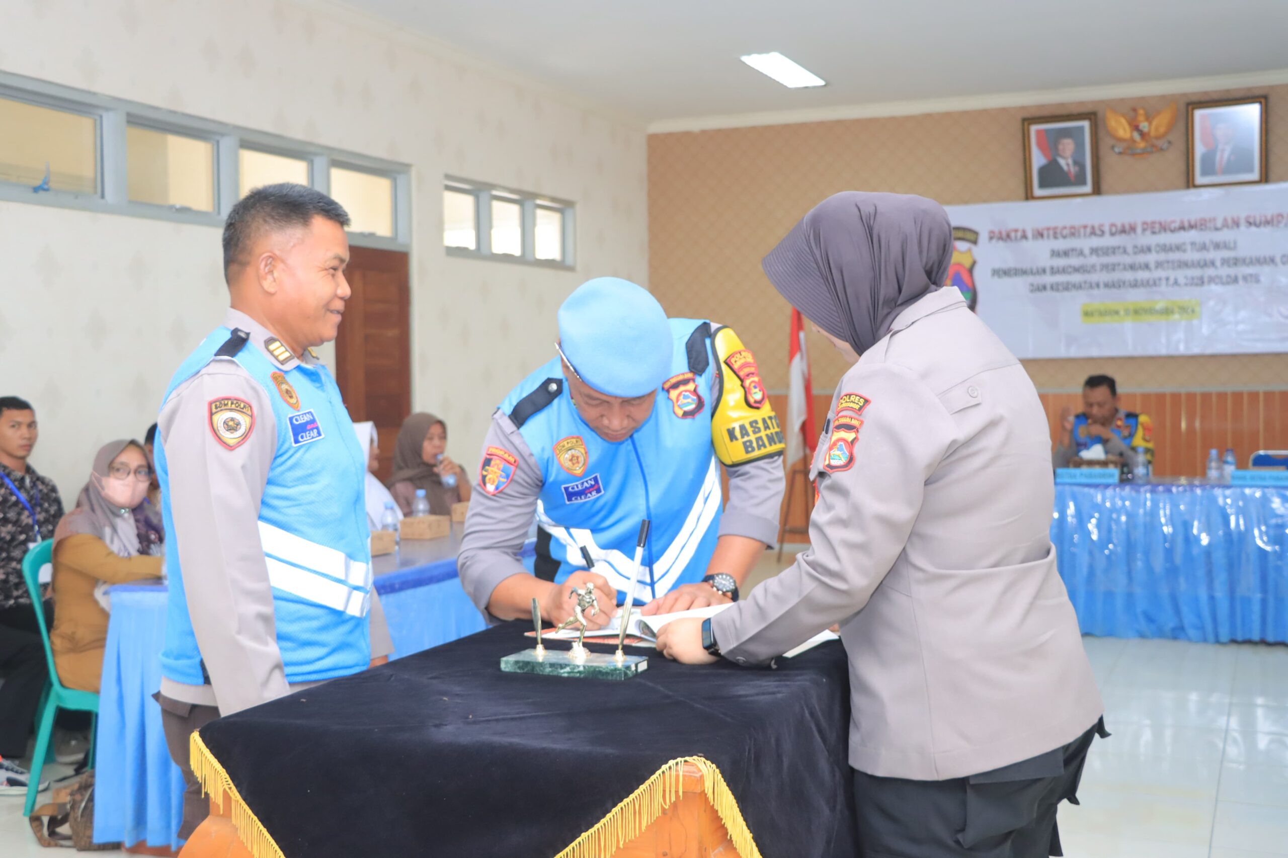 Penandatanganan pakta integritas tersebut dihadiri oleh Wakapolres Sumbawa Barat, Kompol Sidik Pria Mursita, S.H., dan diikuti PS. Kabag SDM, AKP Sadri, Kasi Propam, Kasiwas, Kasi Dokkes, perwakilan dari Dikbud Kab. Sumbawa Barat, Cabang Dinas Dikbud Prov. NTB, Dinas Dukcapil, LSM, dan perwakilan calon siswa didampingi oleh para orang tua calon siswa Bintara Polri tahun 2025, yang juga dilaksanakan secara serentak di seluruh Indonesia.