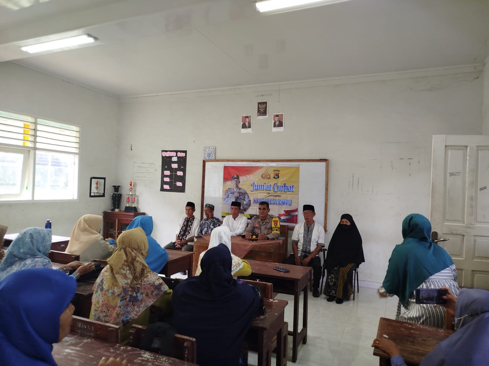 Dalam rangka mempererat komunikasi dengan masyarakat, Polres Dompu mengadakan kegiatan Jum’at Curhat yang berlangsung di ruang kelas MTsN 1 Dompu, Kelurahan Kandai Dua, Kecamatan Woja. Kegiatan yang dimulai pukul 10.10 WITA ini dihadiri oleh Kasat Binmas AKP Makrus S.Sos, mewakili Kapolres Dompu, bersama 20 perwakilan masyarakat setempat.