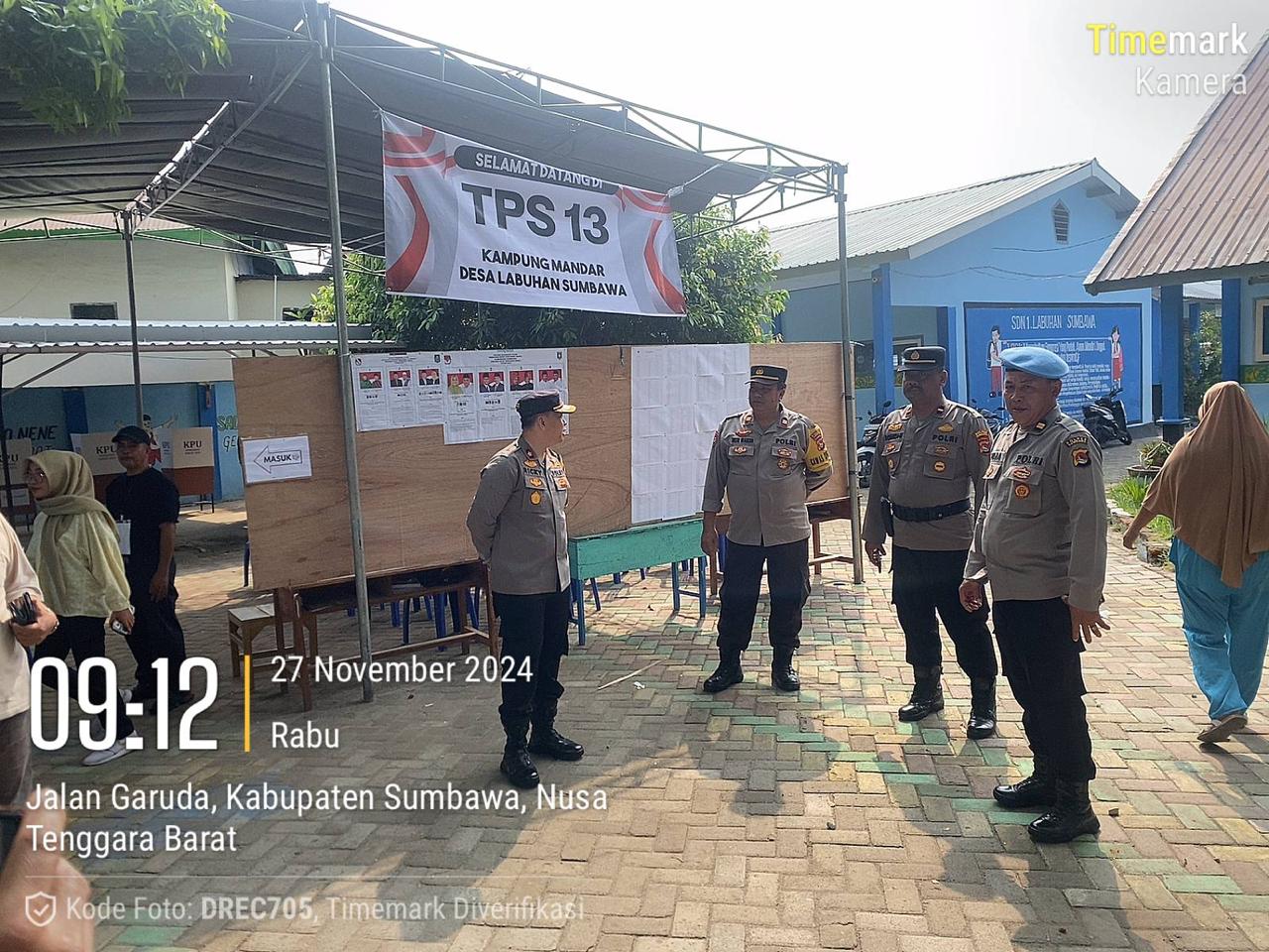 Sumbawa Besar-NTB, Wakapolres Sumbawa, Kompol Ricky Yuhanda, S.E., S.I.K., M.M., melakukan monitoring dan pengecekan langsung terhadap personel yang sedang bertugas mengamankan setiap Tempat Pemungutan Suara (TPS) di Kabupaten Sumbawa, Rabu (27/11) pagi.