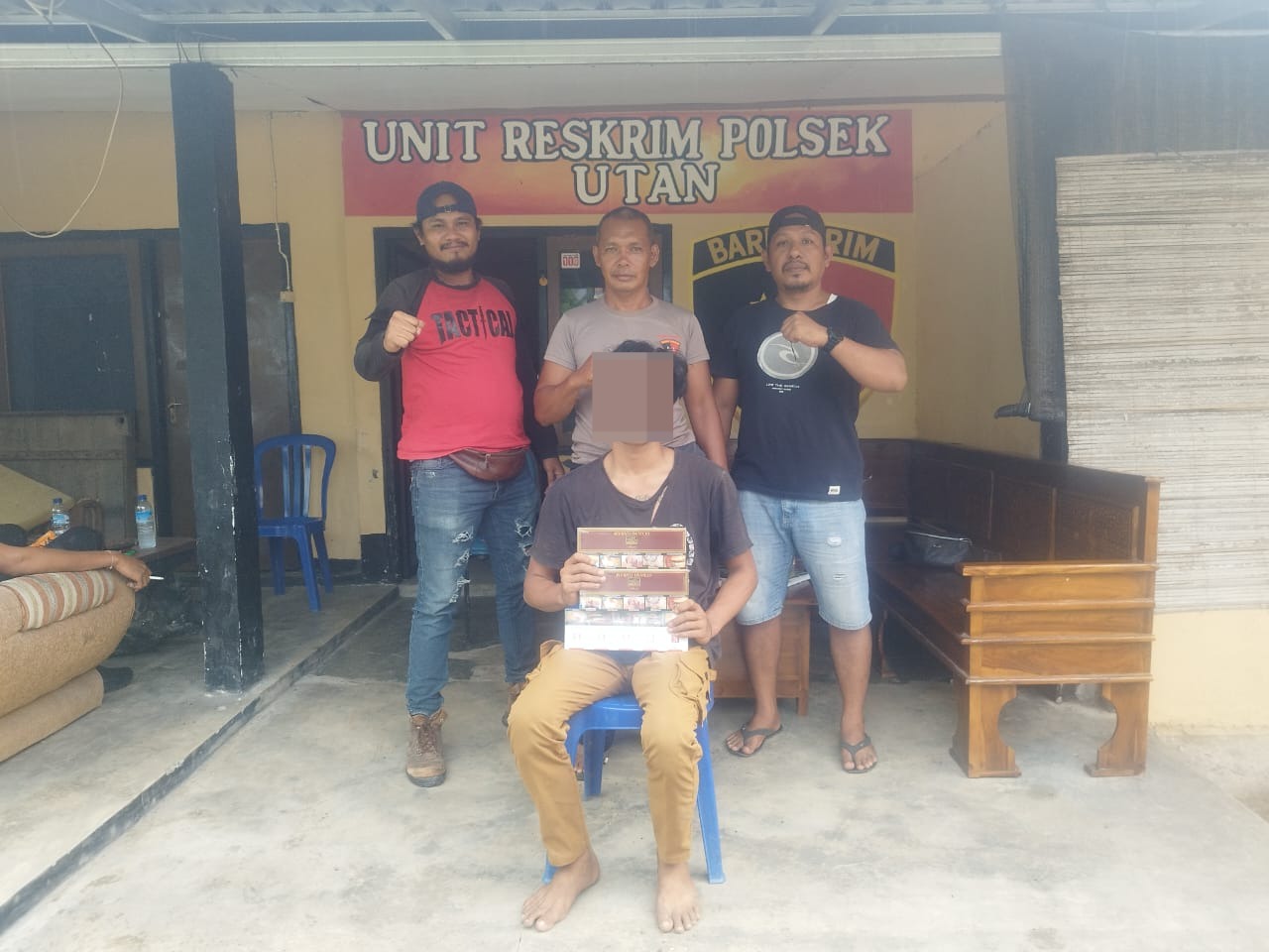 Polsek Utan selanjutnya melakukan upaya penyelidikan dan berhasil mengetahui keberadaan terduga pelaku yang saat itu tengah bersembunyi di rumah neneknya di Desa Jorok dan langsung melakukan penangkapan.
