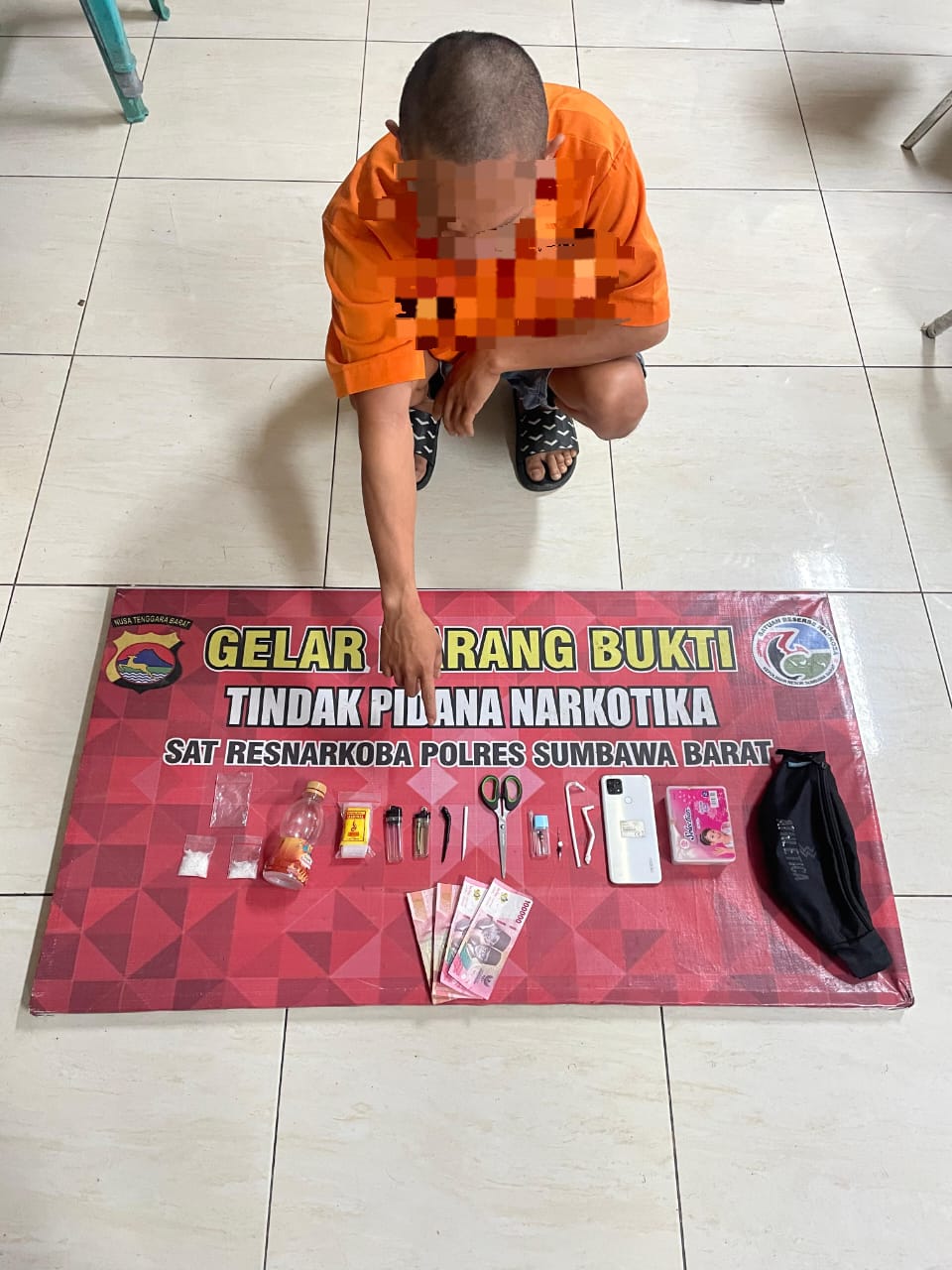 Sumbawa Barat – Lagi Tim Operasional ( opsnal ) Sat Res Narkoba Polres Sumbawa Barat melakukan penangkapan terhadap ( NA ) 25 th, di sebuah kamar kost yang berada di Kel. Telaga Bertong, Taliwang, Rabu 4 /12 / 2024 pukul 22.35 lalu.