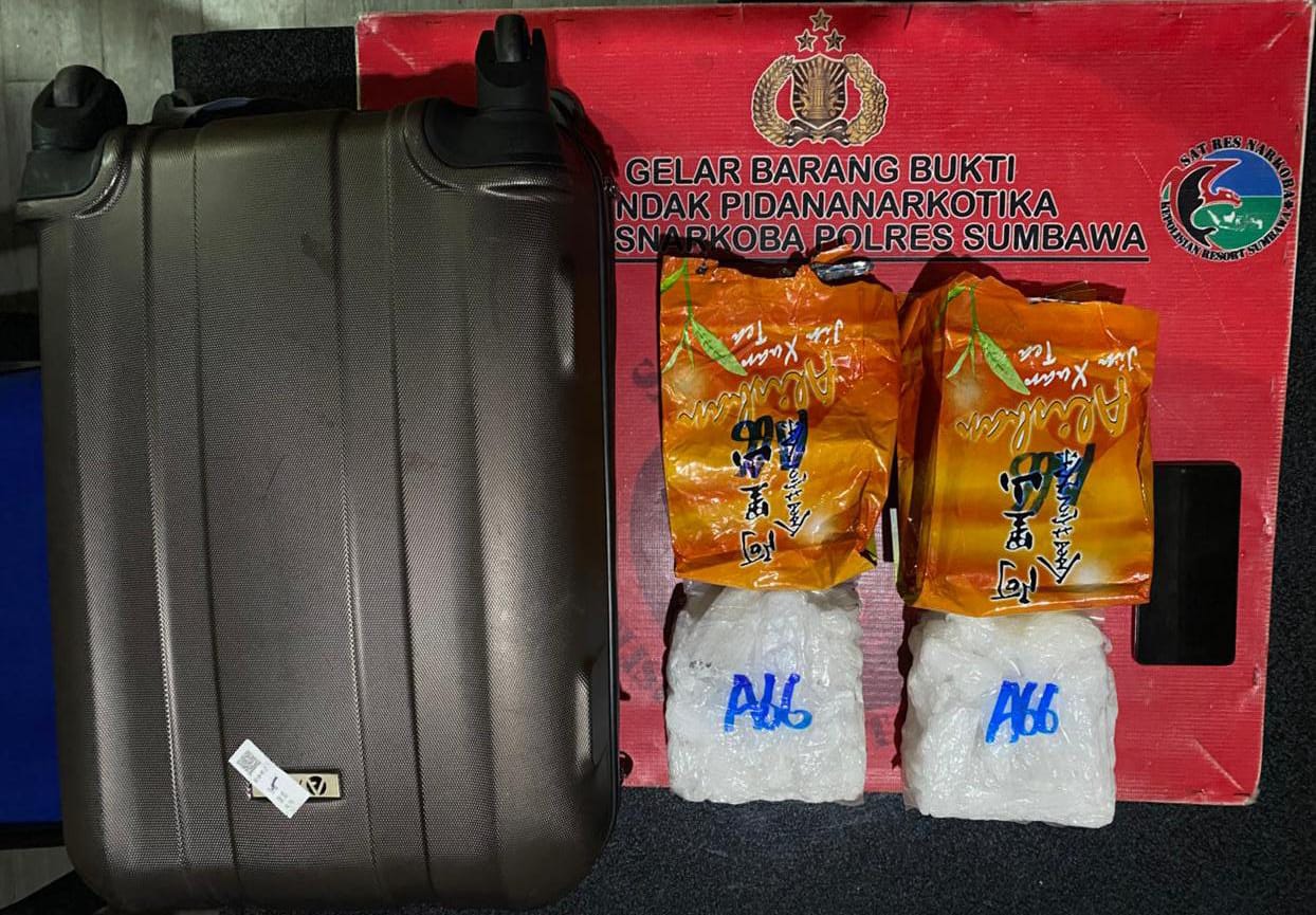 Kedua terduga pelaku berhasil ditangkap di rumah milik J warga Desa Karang Dalam, Kecamatan Alas, Jumat (20/12/2024) sekira pukul 00.45 wita. Bersama mereka, ditemukan barang bukti berupa, koper berisi 2.041,79 Gram narkotika jenis sabu yang dibungkus dalam plastik teh dan 1 unit HP.