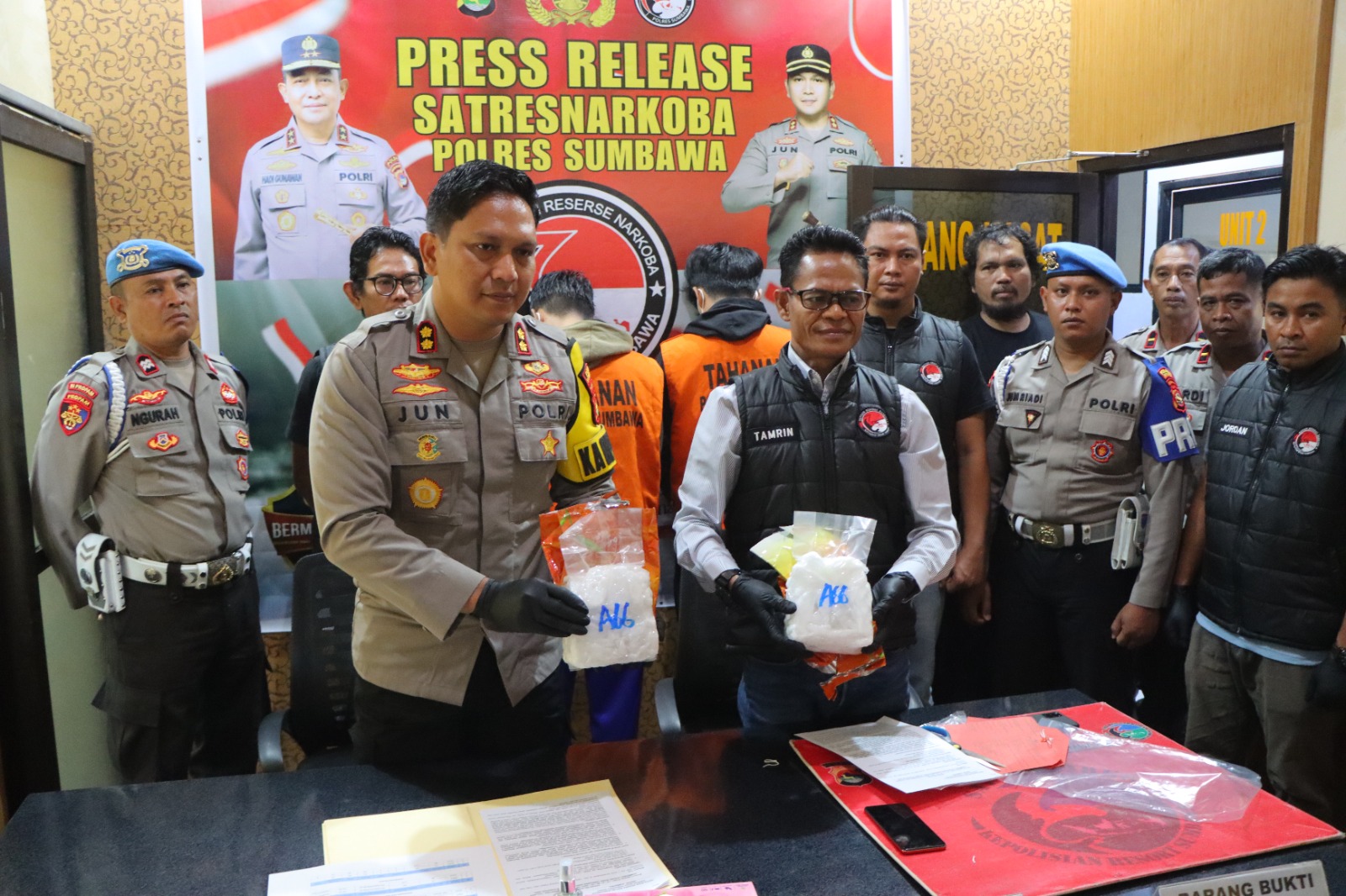 Hal ini disampaikan oleh Kapolres Sumbawa AKBP Bagus Nyoman Gede Junaedi, S.H.,S.IK., M.AP., didampingi Kasat Narkoba AKP Tamrin, S.Sos., dalam Press Release yang digelar, Sabtu (21/12/2024) pagi tadi.
