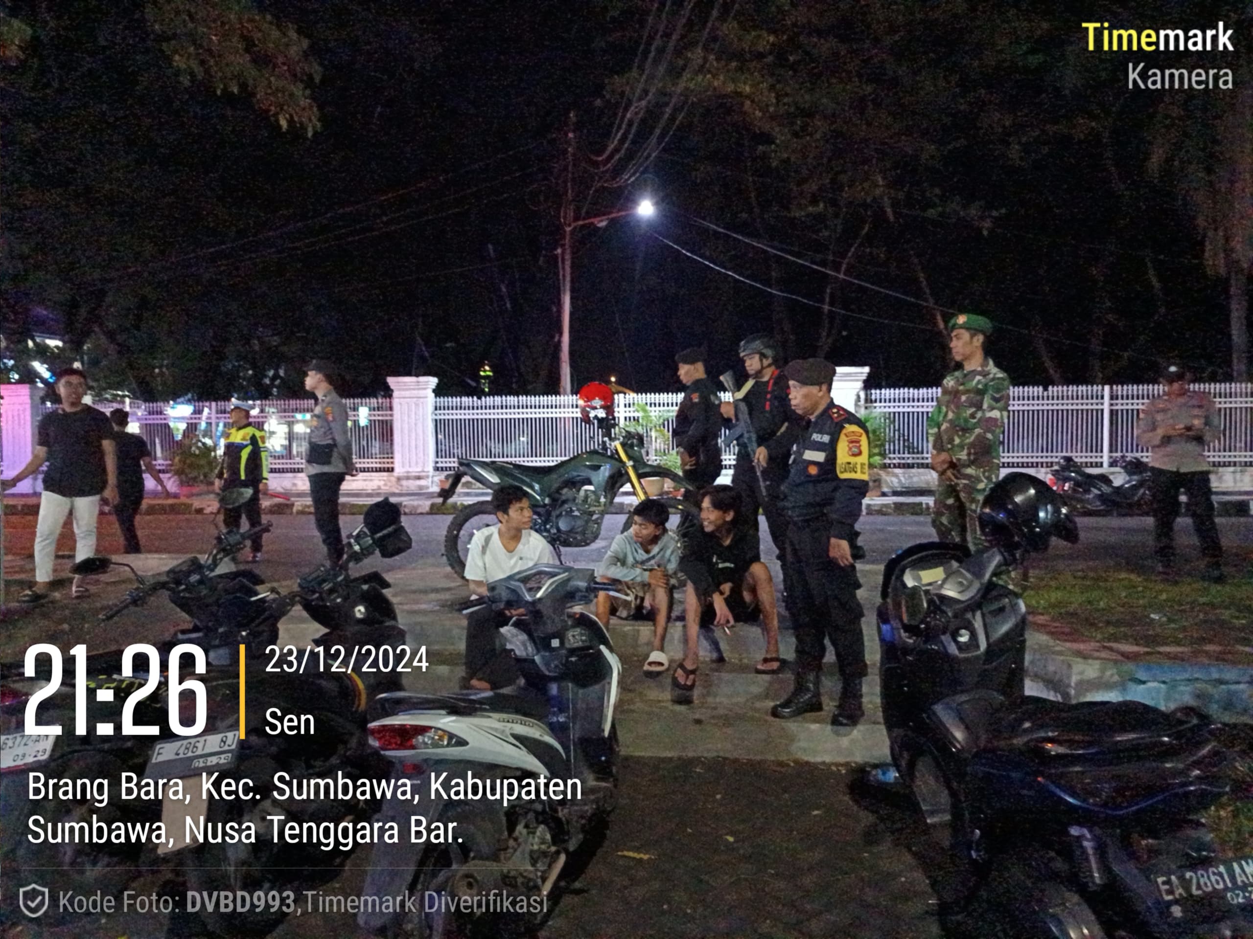Sumbawa Besar-NTB, Sebagai bagian dari Operasi Lilin Rinjani 2024, Polres Sumbawa melalui Personel gabungan dari Satgas Preventif melaksanakan patroli dialogis malam hari di berbagai tempat keramaian di wilayah Kabupaten Sumbawa, Senin (23/12/24) malam.