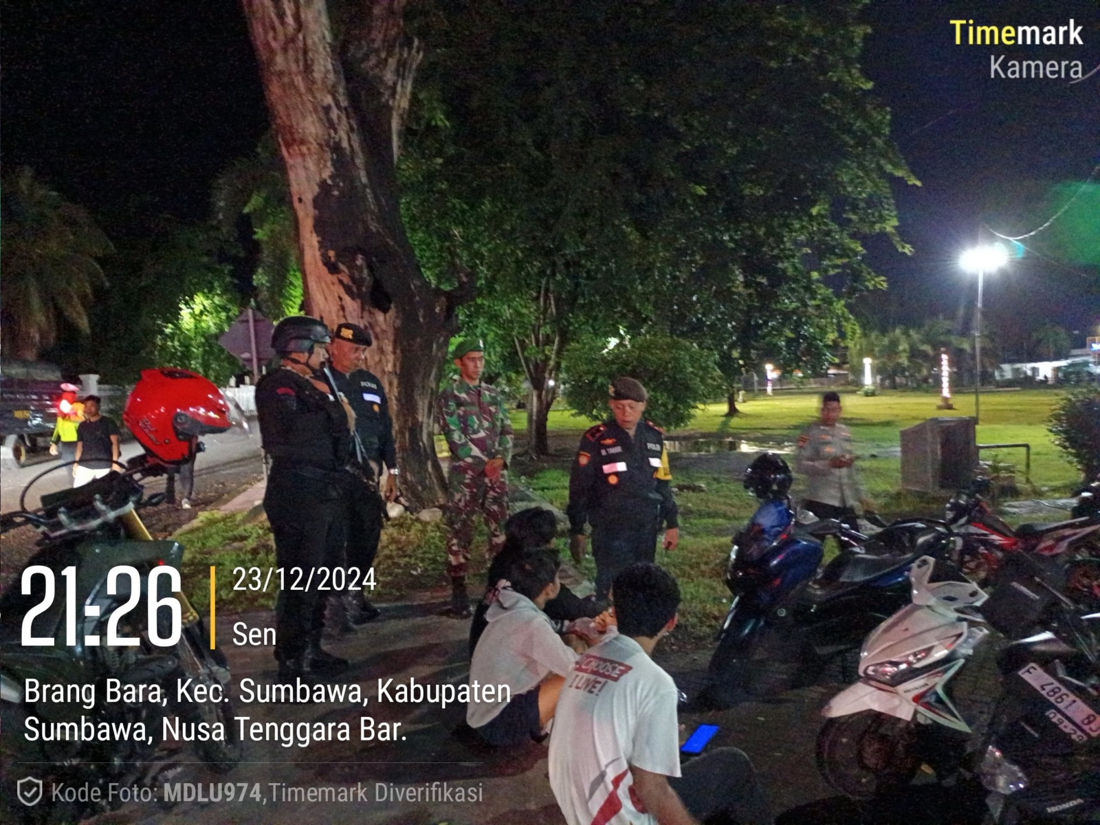 Sumbawa Besar-NTB, Sebagai bagian dari Operasi Lilin Rinjani 2024, Polres Sumbawa melalui Personel gabungan dari Satgas Preventif melaksanakan patroli dialogis malam hari di berbagai tempat keramaian di wilayah Kabupaten Sumbawa, Senin (23/12/24) malam.