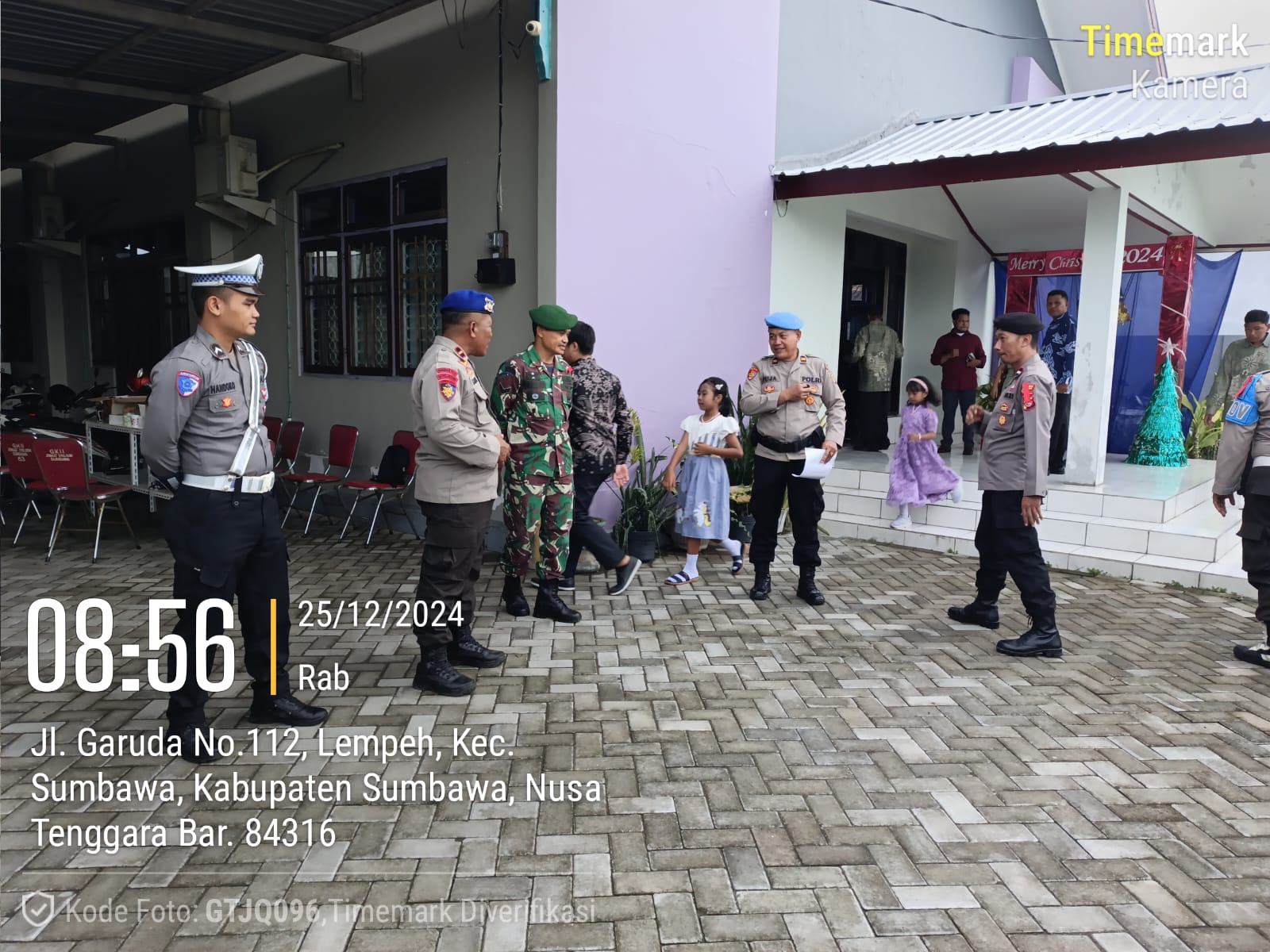 Sumbawa Besar-NTB, Personel jajaran Polres Sumbawa melaksanakan pengamanan perayaan Hari Raya Natal pada Rabu (25/12/2024) pagi, di sejumlah gereja yang berada di wilayah hukum Polres Sumbawa. Pengamanan ini merupakan bagian dari rangkaian Operasi Lilin Rinjani 2024, yang melibatkan personel kepolisian, TNI, serta instansi terkait.