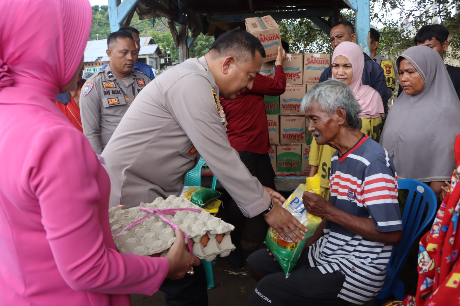 Kunjungan diawali di Kelurahan Paruga, Kecamatan Rasanae Barat, Kota Bima. Di lokasi tersebut, ratusan paket sembako berisi beras, mie instan, telur, dan kebutuhan pokok lainnya dibagikan kepada warga terdampak. Tidak hanya itu, Kapolres Bima Kota juga menyerahkan nasi siap makan dan uang tunai kepada anak-anak dan warga yang membutuhkan.