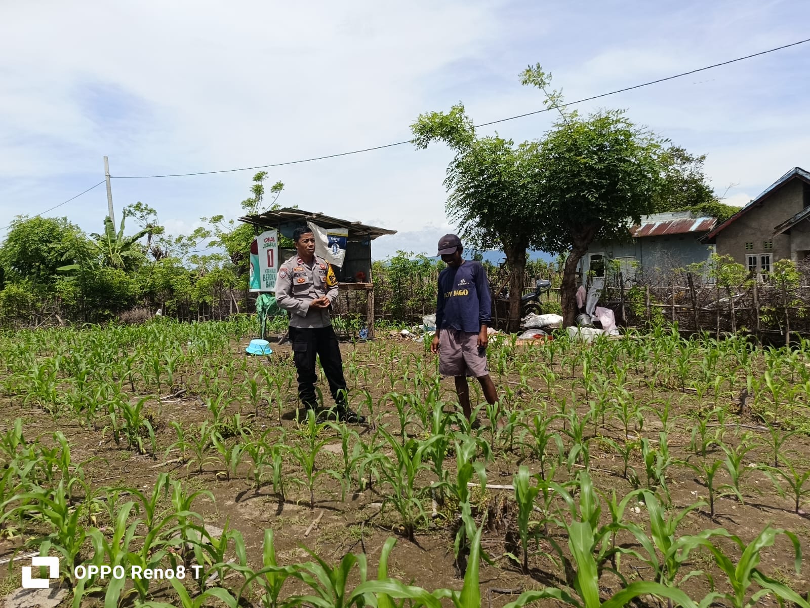 Bhabinkamtibmas Desa Hu’u, AIPDA M. Husnin, bersama warga binaan melaksanakan pemantauan lahan jagung di Dusun Cangga, Desa Hu’u, Kecamatan Hu’u, Kabupaten Dompu. Kegiatan ini menjadi bagian dari Program Ketahanan Pangan Nasional Menuju Indonesia Emas 2024.