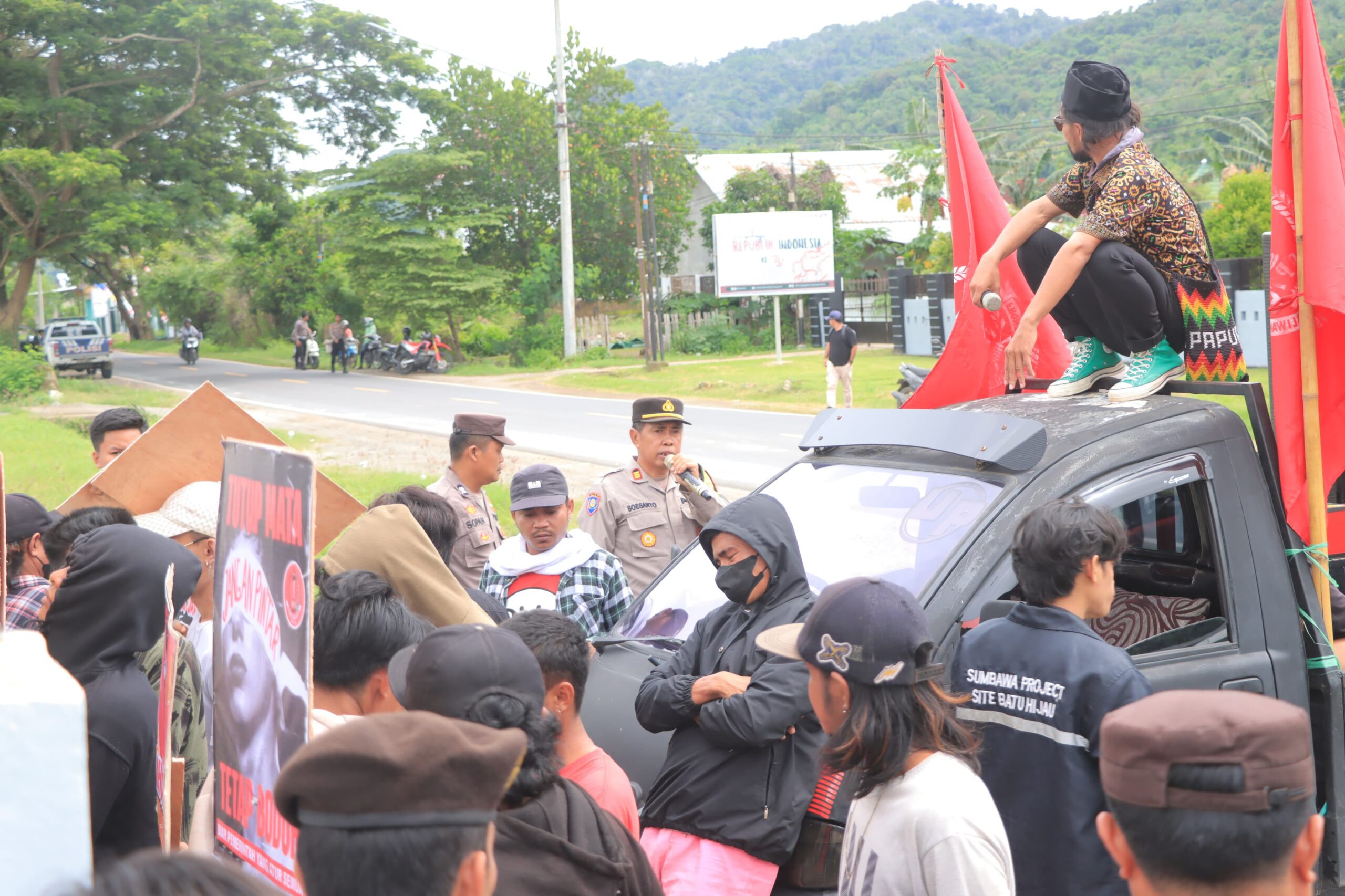 Sumbawa Barat – Polres Sumbawa Barat beri pelayanan pengamanan dalam penyampaian pendapat di muka umum yang dilakukan oleh Front Pemuda Taliwang (FPT) bertempat di depan Kantor Kejaksaan Negeri Sumbawa Barat, pada Kamis, 16 Januari 2025 sekitar pukul 10.00 WITA.