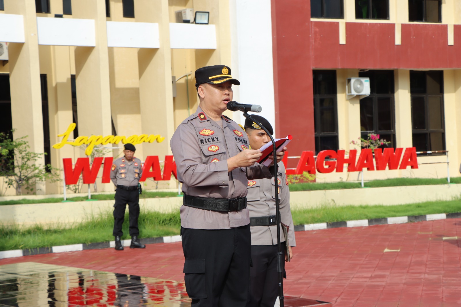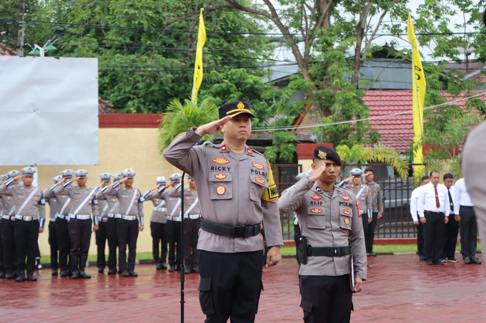 Upacara tersebut dipimpin langsung oleh Wakapolres Sumbawa Kompol Ricky Yuhanda S.E, S.IK, M.M., dan di ikuti oleh seluruh PJU dan juga Personel serta ASN Polres Sumbawa.