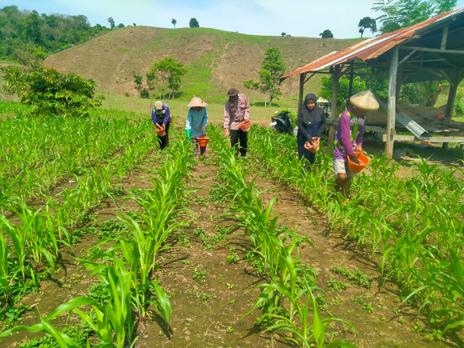 Sumbawa Barat – Jagung merupakan salah satu sumber pangan yang mampu mendukung program ketahanan pangan nasional. Polres Sumbawa Barat melalui Polisi Penggerak Ketahanan Pangan gencar melakukan pendampingan petani jagung seperti yang dilakukan oleh PS. Kanit Binmas Polsek Maluk, Aiptu Aries Budi Prayitno, mendampingi pemupukan petani jagung di Perkebunan Balas Desa Pasir Putih Kecamatan Maluk, Jumat (17/01/2025).