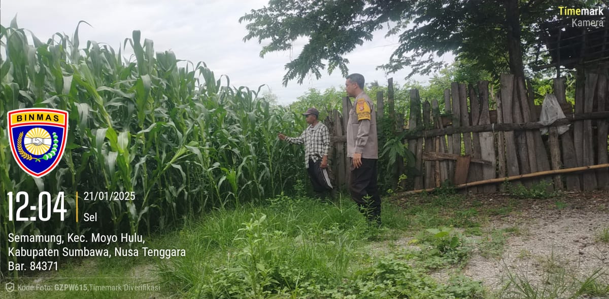 Salah satunya adalah kegiatan yang dilakukan oleh Bhabinkamtibmas Desa Semamung, Bripka Micsen Bayu Saputra, yang melakukan pengecekan kebun ketahanan pangan milik warga binaannya pada hari Selasa, 21 Januari 2025.