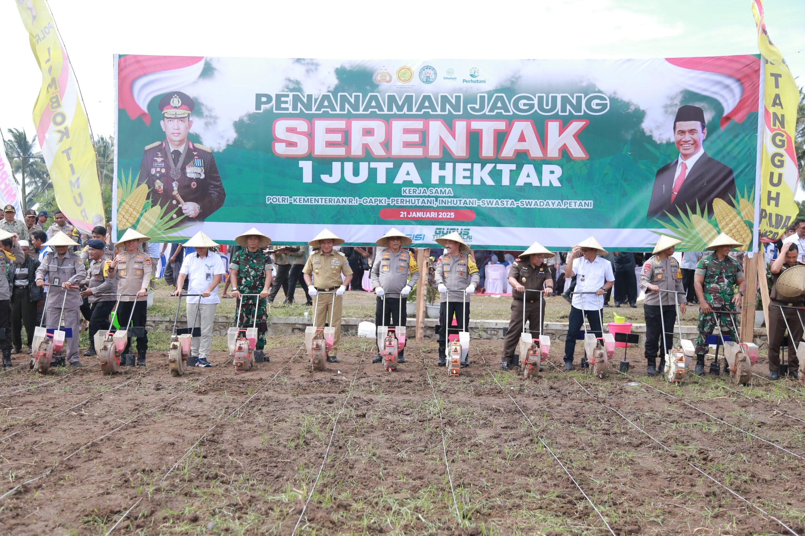 Penanaman jagung serentak ini menjadi simbol komitmen Polda NTB, dalam mendukung ketahanan pangan nasional, khususnya menghadapi target swasembada tahun 2025. Dalam sambutannya, Irjen Pol Hadi Gunawan menekankan pentingnya peran institusi kepolisian, pemerintah daerah, dan masyarakat dalam mewujudkan Indonesia sebagai lumbung pangan dunia.