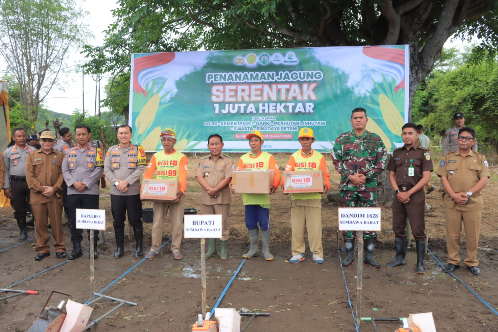 Sumbawa Barat NTB – Kepolisian Resor (Polres) Sumbawa Barat , ikuti penanaman jagung serentak yang dilaksanakan bersama oleh jajaran Kepolisian Republik Indonesia secara virtual sebagai upaya menuju swasembada jagung dengan target 1 juta hektare (ha). Kick Off dilaksanakan pada Senin, 21 Januari 2025.
