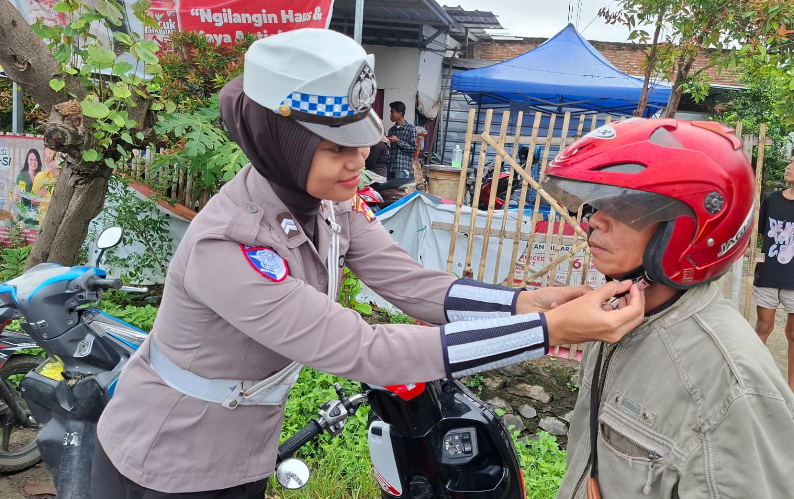 Selain memberikan edukasi, petugas juga membagikan pamflet yang berisi panduan keselamatan berkendara, seperti pentingnya menggunakan helm SNI, mematuhi rambu lalu lintas, dan tidak menggunakan ponsel saat mengemudi.
