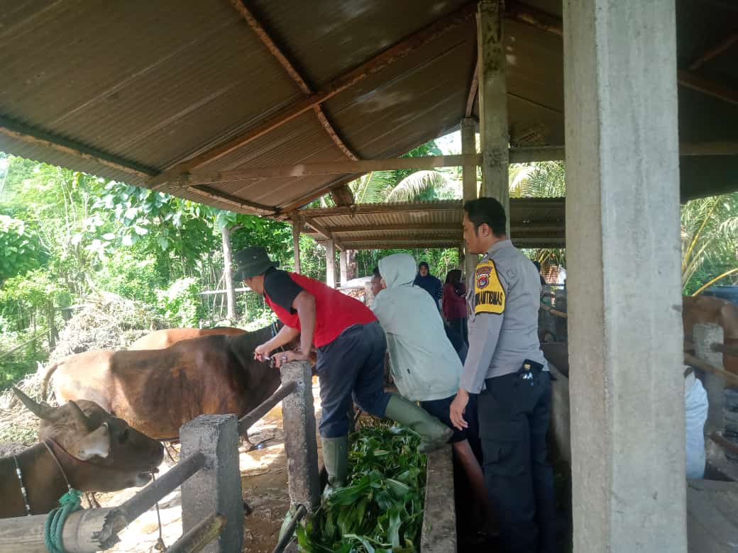 “Penting kehadiran Bhabinkamtibmas untuk turun mendampingi petugas kesehatan khewan yang melakukan sosialisasi dan edukasi kepada para peternak tentang Penyakit Mulut dan Kuku, selain itu juga untuk memastikan seluruh hewan ternak milik masyarakat bisa divaksin oleh petugas kesehatan hewan agar terhindar dari penyakit, apalagi sektor peternakan salah satu penunjang dalam program ketahanan pangan yang harus kita dukung” jelas AKP Zainal.