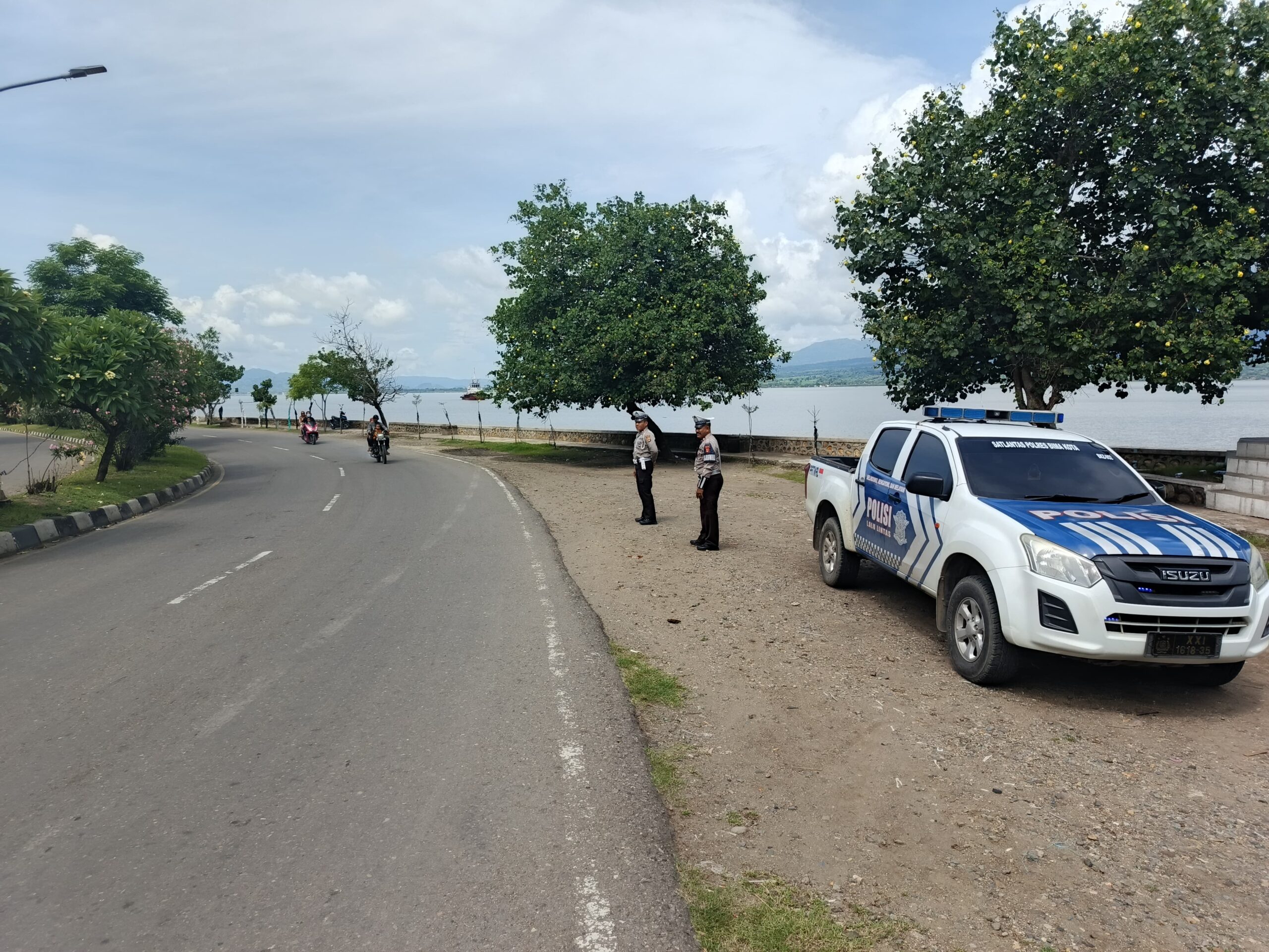 Kota Bima, NTB (29 Januari 2025) – Dalam rangka menciptakan kondisi aman dan nyaman selama libur Imlek 2025, Satuan Lalu Lintas (Sat Lantas) Polres Bima Kota melaksanakan patroli di kawasan wisata Pantai Lawata, Kota Bima, pada Rabu (29/1) pukul 09.00 WITA.