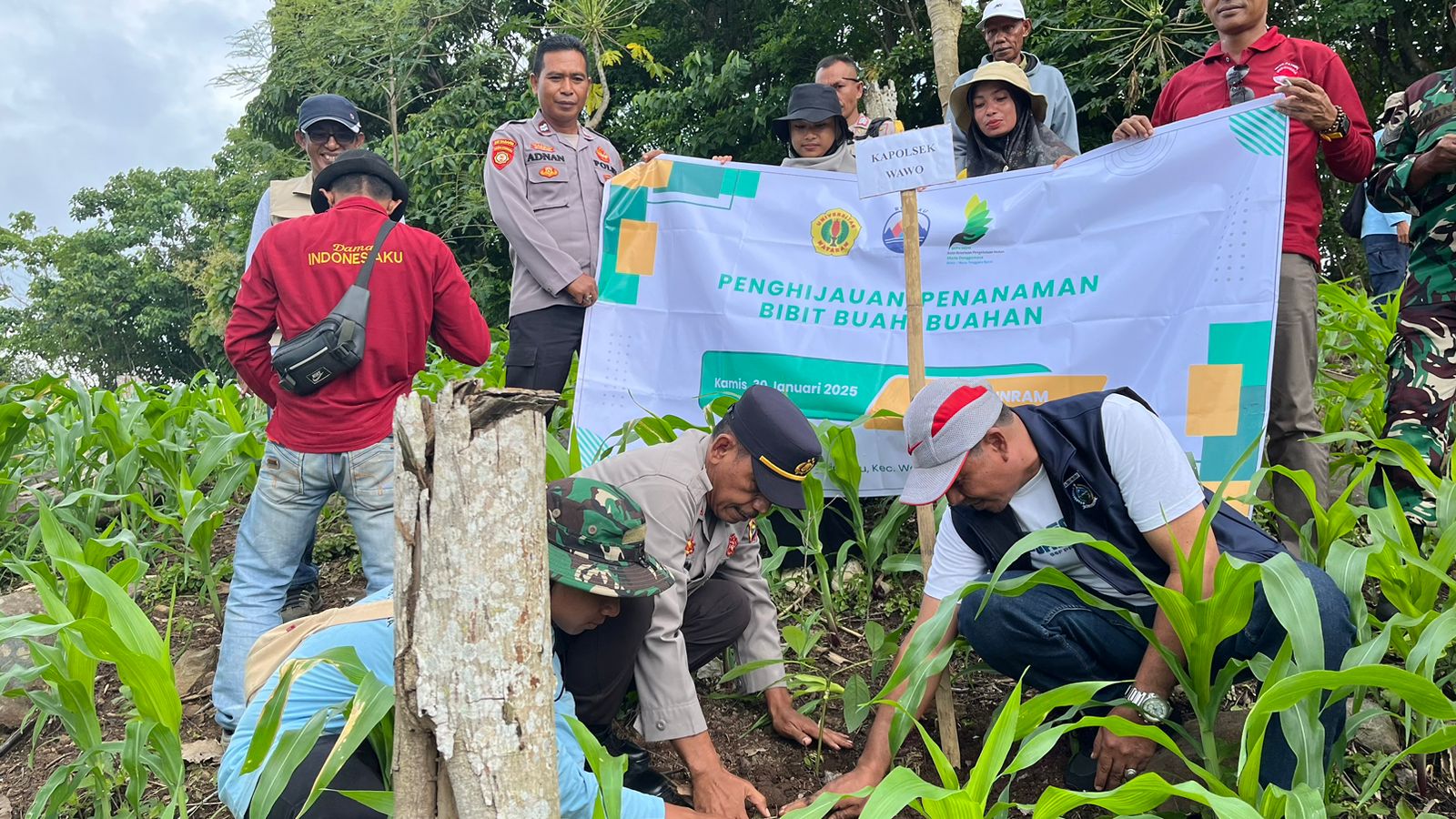 Bima, NTB (30/1) – Polsek Wawo melaksanakan kegiatan penghijauan dan penanaman bibit buah yang diadakan oleh mahasiswa Kuliah Kerja Nyata (KKN) Universitas Mataram (Unram) pada Kamis, 30 Januari 2025. Kegiatan ini berlangsung mulai pukul 10.00 WITA di Kelompok Tani Hutan (KTH) Wadu Mara, Desa Riamau, Kecamatan Wawo, Kabupaten Bima.
