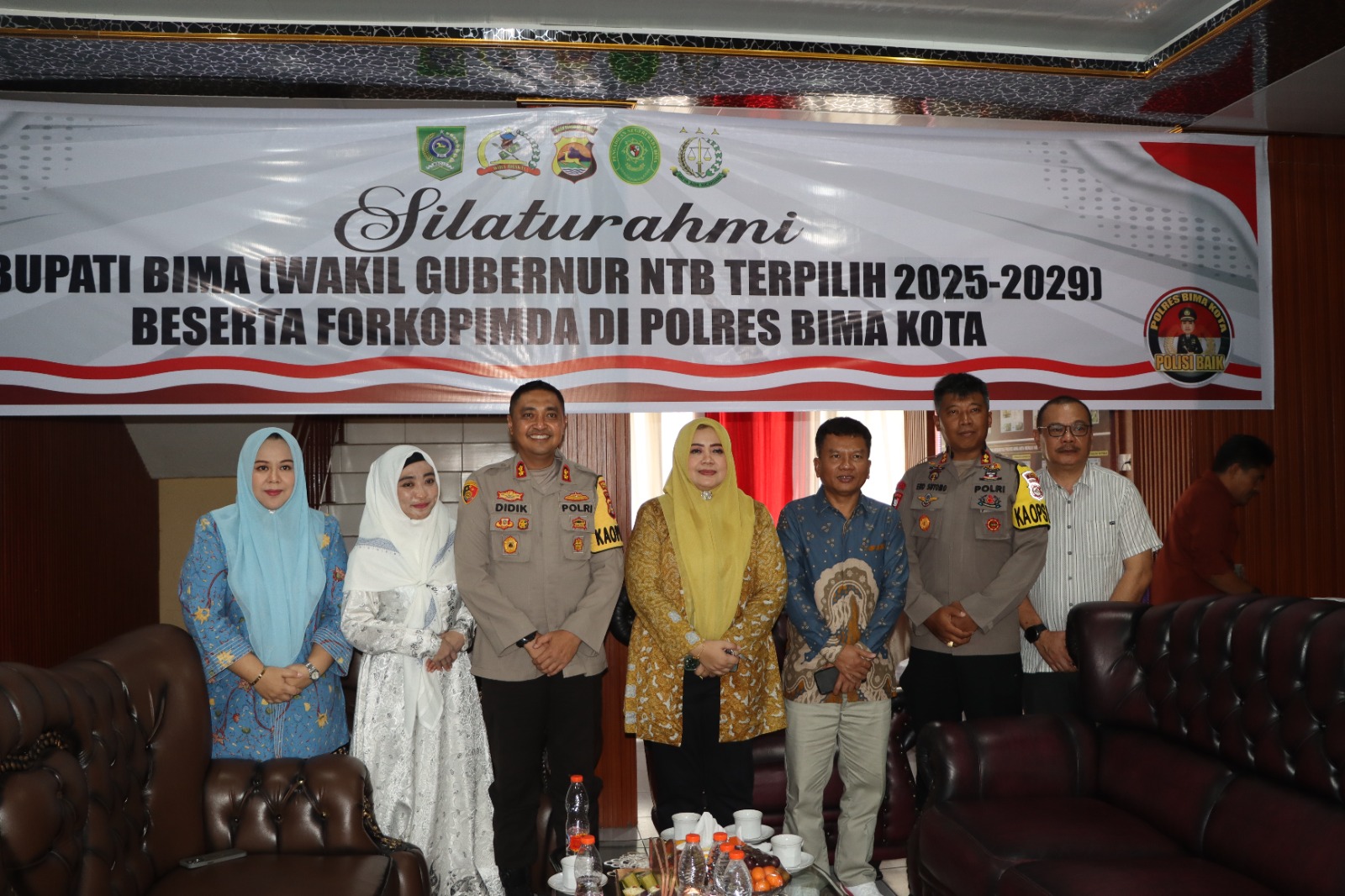 Bima Kota – Pada hari Jumat, 31 Januari 2025, pukul 10.00 WITA, Kapolres Bima Kota AKBP Didik Putra Kuncoro, S.I.K., M.Si. menerima kunjungan silaturahmi Bupati Bima, Hj. Indah Dhamayanti Putri, S.E., M.I.P., yang juga merupakan Wakil Gubernur NTB terpilih periode 2025-2029, beserta jajaran Forum Koordinasi Pimpinan Daerah (Forkopimda) di Polres Bima Kota.