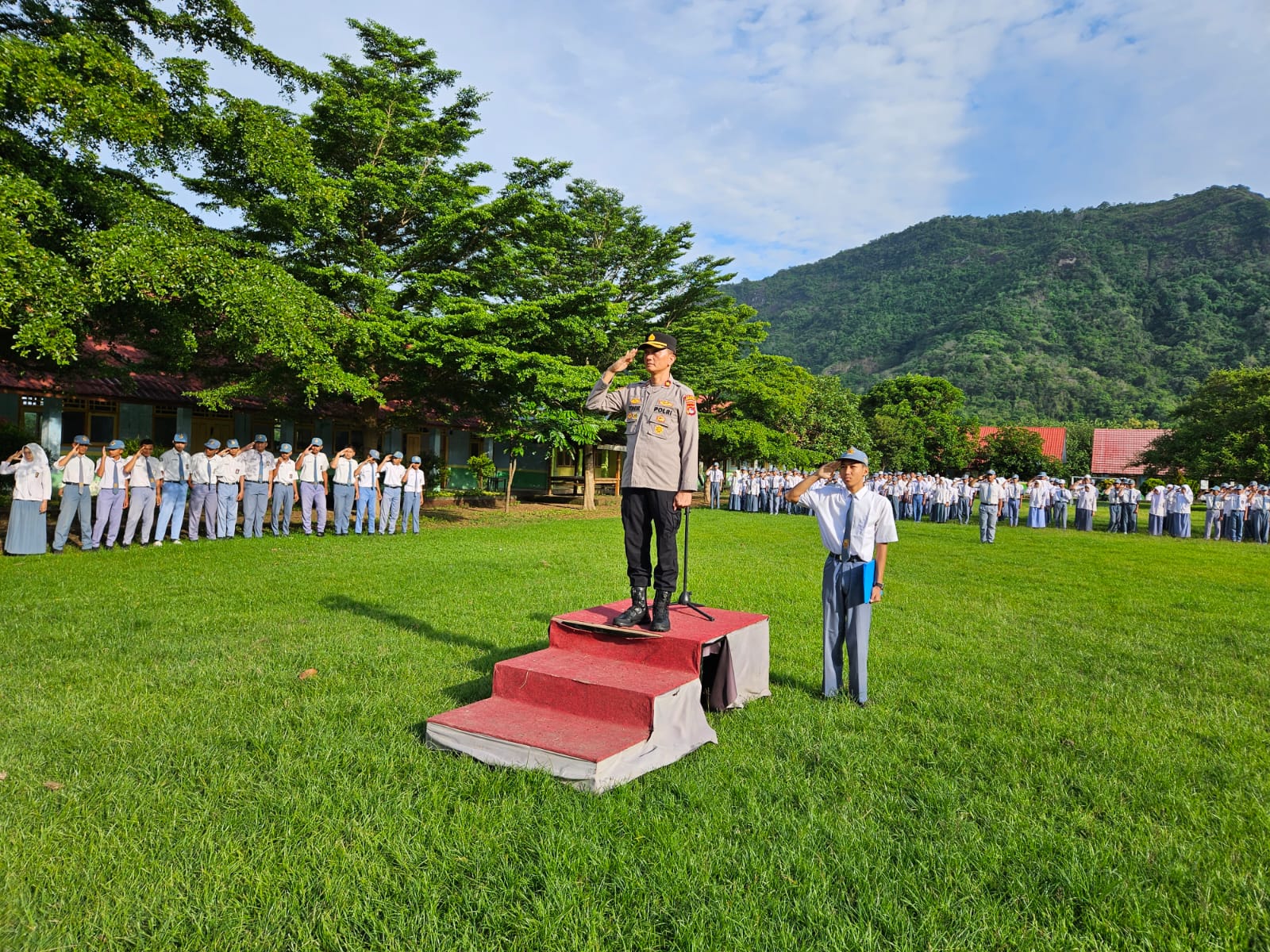 Sumbawa Barat – Pada hari Senin, 3 Februari 2025, pukul 07.30 WITA, upacara pengibaran bendera merah putih di SMKN 1 Maluk berlangsung dengan khidmat. Upacara ini dipimpin oleh Kapolsek Maluk, Kompol Tohir, S.H., yang hadir sebagai Pembina Upacara.