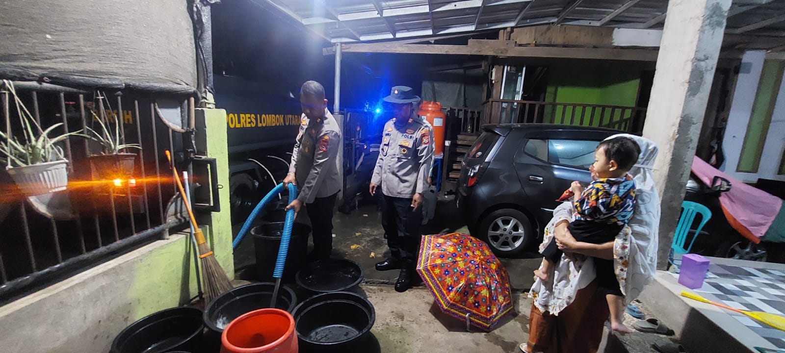 Polres Lombok Utara bersama dengan Polsek Kayangan segera melakukan kolaborasi untuk pendistribusian air bersih ke Desa Selengen untuk membantu warga memperoleh air bersih.