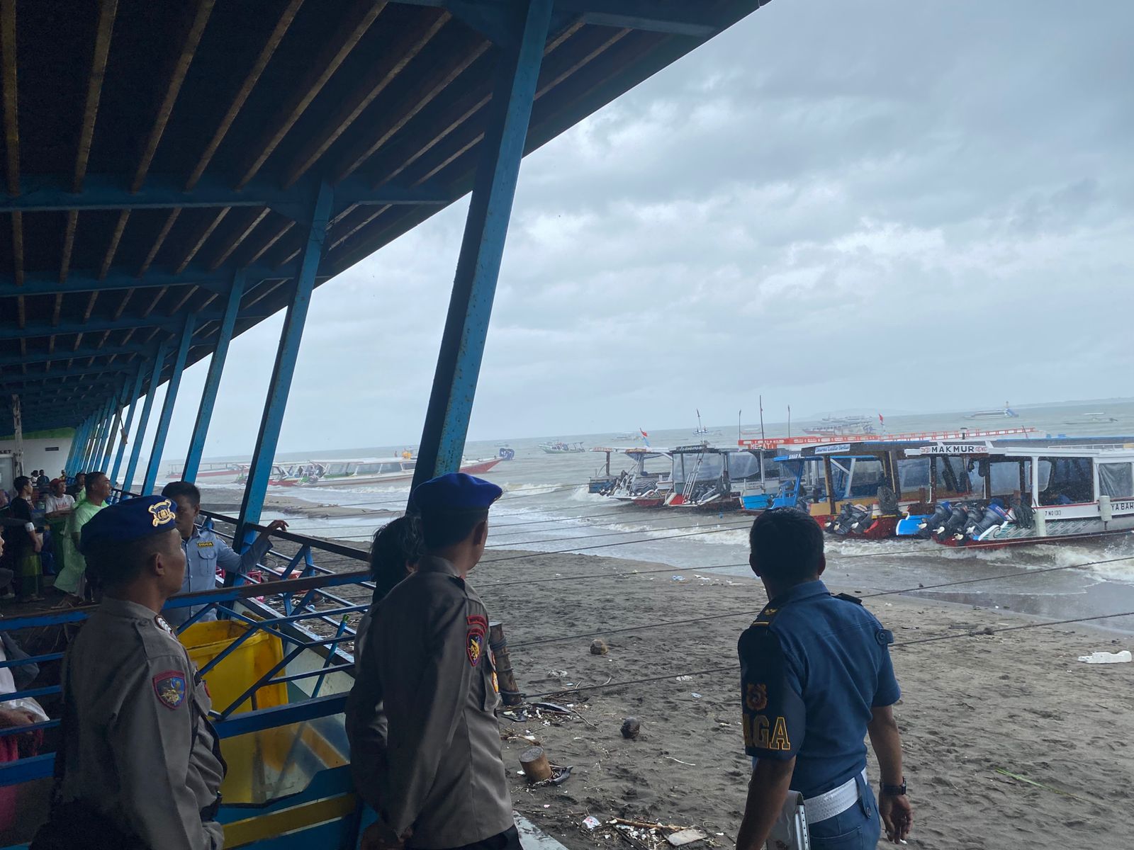 “Kami menghimbau kepada masyarakat yang beraktifitas di laut untuk sementara agar tidak beroperasi dahulu untuk menghindari hal yang tidak diinginkan dan kami himbau untuk pelaku jasa penyebrangan agar melengkapi kelengkapan keselamatan dengan menyediakan jaket keselamatan dan mematuhi peringatan yang diberikan oleh petugas”.