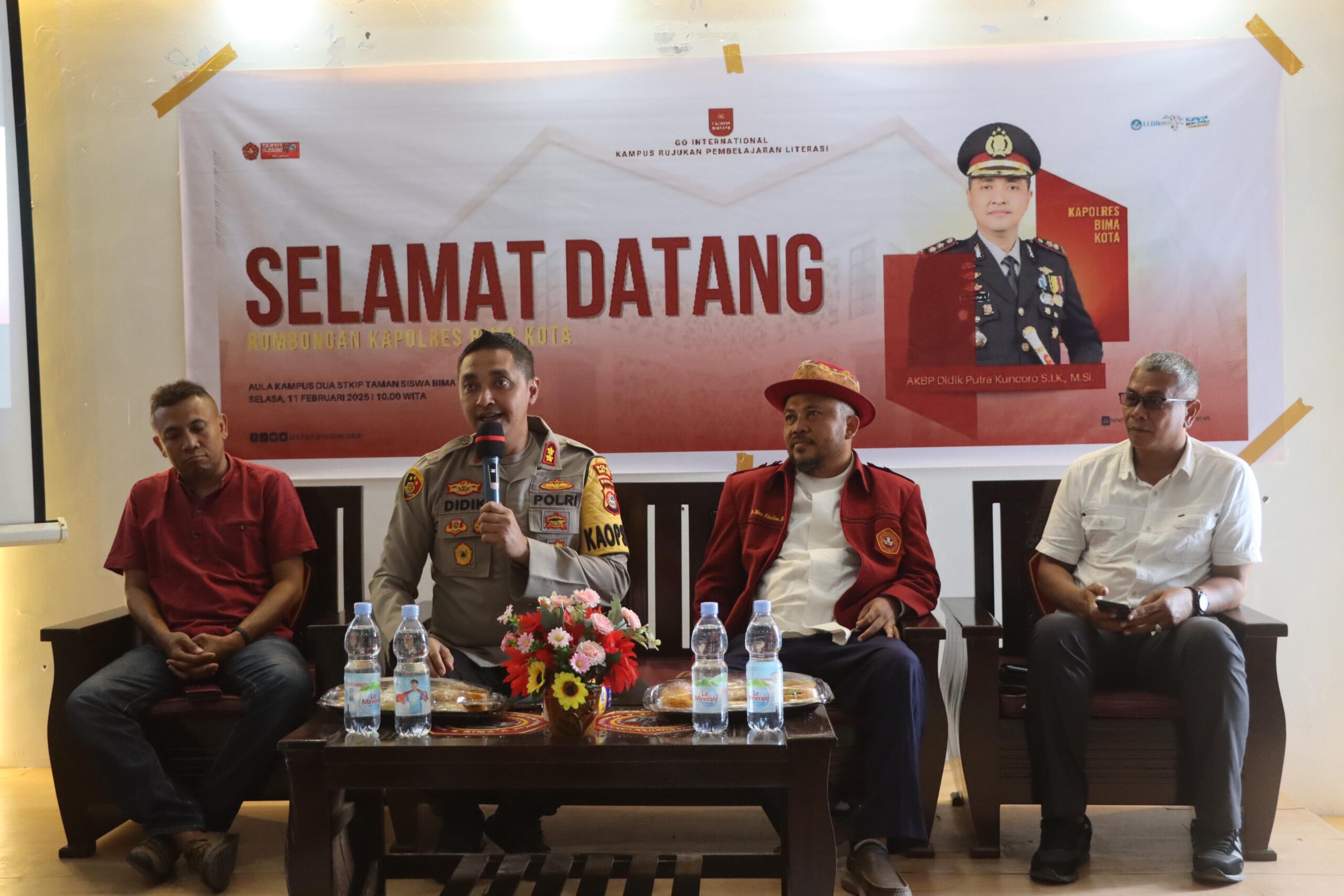 Dalam sambutannya, pihak STKIP Taman Siswa Bima menyampaikan terima kasih kepada Kapolres Bima Kota atas kehadirannya dalam acara silaturahmi ini. Mereka juga menegaskan komitmen untuk mendukung tugas kepolisian dalam menjaga keamanan dan ketertiban di Kota Bima. STKIP Taman Siswa Bima memiliki koperasi mandiri yang berperan penting dalam memenuhi kebutuhan mahasiswa dan dosen. Selain itu, kampus ini memiliki tujuh program studi yang diminati dan didukung oleh hampir 30 dosen bersertifikasi, termasuk yang bergelar doktor.