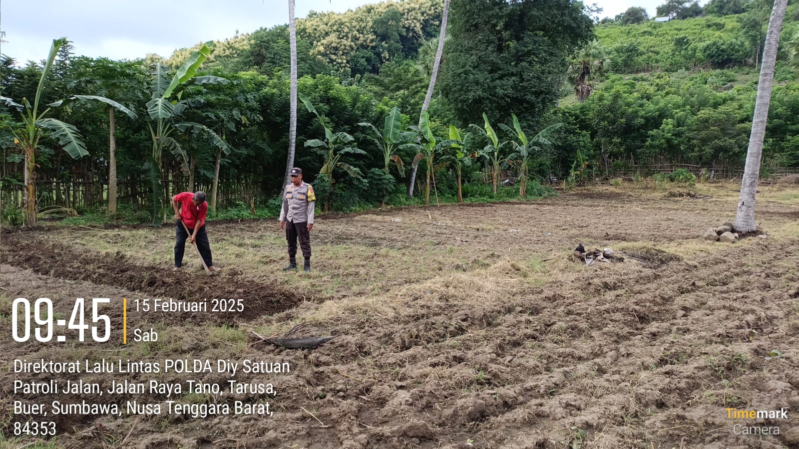 Sumbawa Besar –NTB, Bhabinkamtibmas Polsek Buer, BRIPKA Heriyanto, melaksanakan kegiatan sambang sekaligus memantau aktivitas para pekebun di Desa Tarusa, tepatnya di kebun milik Bapak A. Rahman yang berada di wilayah Orong Lalak, Sabtu (15/02/25) pagi.