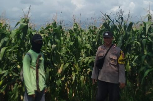 Bhabinkamtibmas Desa Tanju melaksanakan silaturahmi dan sosialisasi ketahanan pangan dengan mengunjungi lahan jagung milik Bapak Muhtar di Dusun Puncak, Desa Tanju, Kecamatan Manggelewa.
