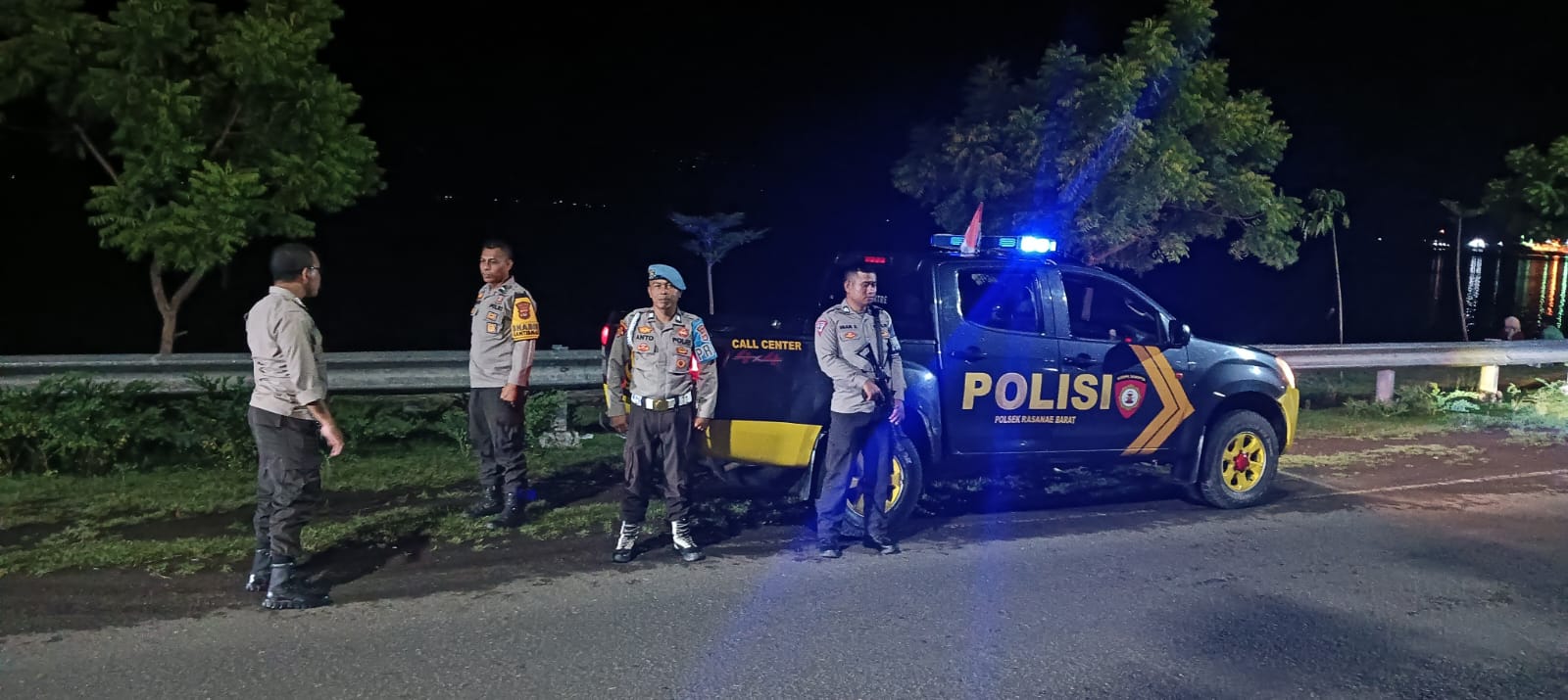 Patroli dimulai pukul 21.40 WITA dari Mapolsek Rasanae Barat dengan menyusuri beberapa titik rawan kriminalitas. Rute pertama menuju Terminal Dara dan Lingkungan Wadumbolo untuk memantau serta meminimalisir aktivitas balap liar yang sering meresahkan warga sekitar. Saat kendaraan patroli melintas di jalur dua, situasi terpantau sepi dan tidak ada aktivitas mencurigakan, sehingga kondisi dinyatakan aman.