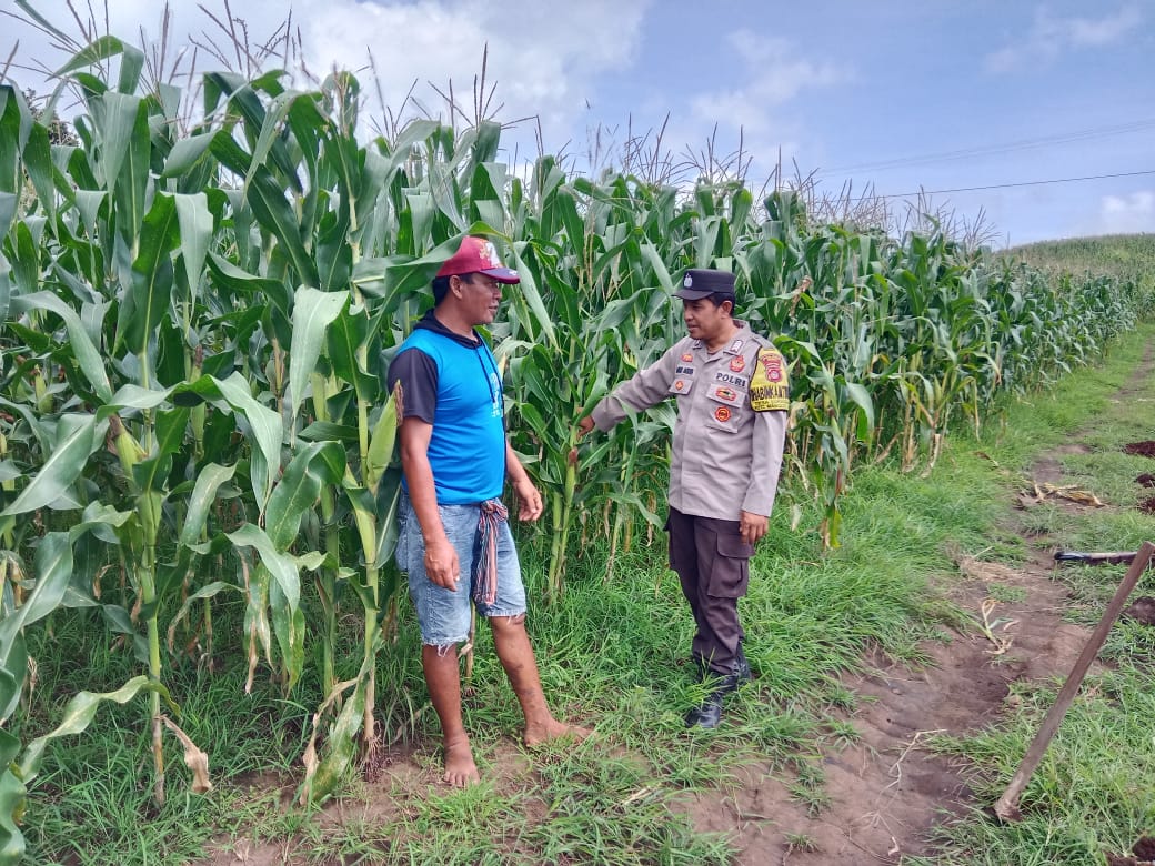 Dalam kegiatan tersebut, Bhabinkamtibmas mengunjungi lahan pekarangan milik Ridwan yang telah ditanami jagung. Selain melakukan pemantauan, ia juga memberikan sosialisasi mengenai pentingnya pemanfaatan lahan pertanian untuk ketahanan pangan.