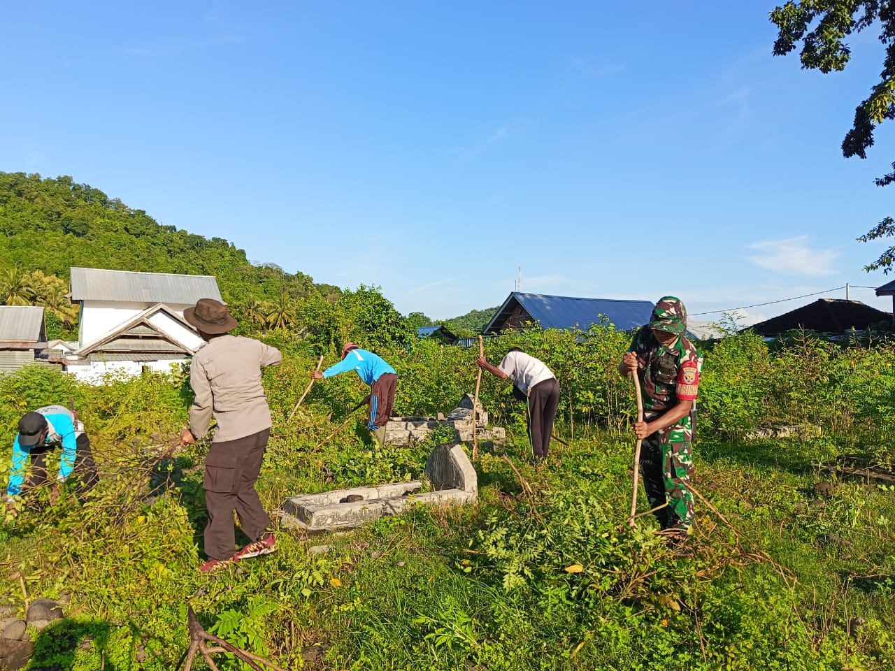 Sumbawa Barat, NTB – Sebutan Tiga Pilar di tingkat desa terdiri dari Kepala Desa, Bhabinkamtibmas, dan Babinsa memiliki peranan penting dalam menyukseskan pelaksanaan pembangunan masyarakat desa. Ketiga unsur tersebut harus saling mendukung dan kompak seperti yang dilakukan Kades Belo, Bhabinkamtibmas, dan Babinsa didukung dengan masyarakat bersama-sama bergotong royong membersihkan Tempat Pemakaman Umum Desa Belo Kecamatan Jereweh Kabupaten Sumbawa Barat, Selasa (25/02/2025).