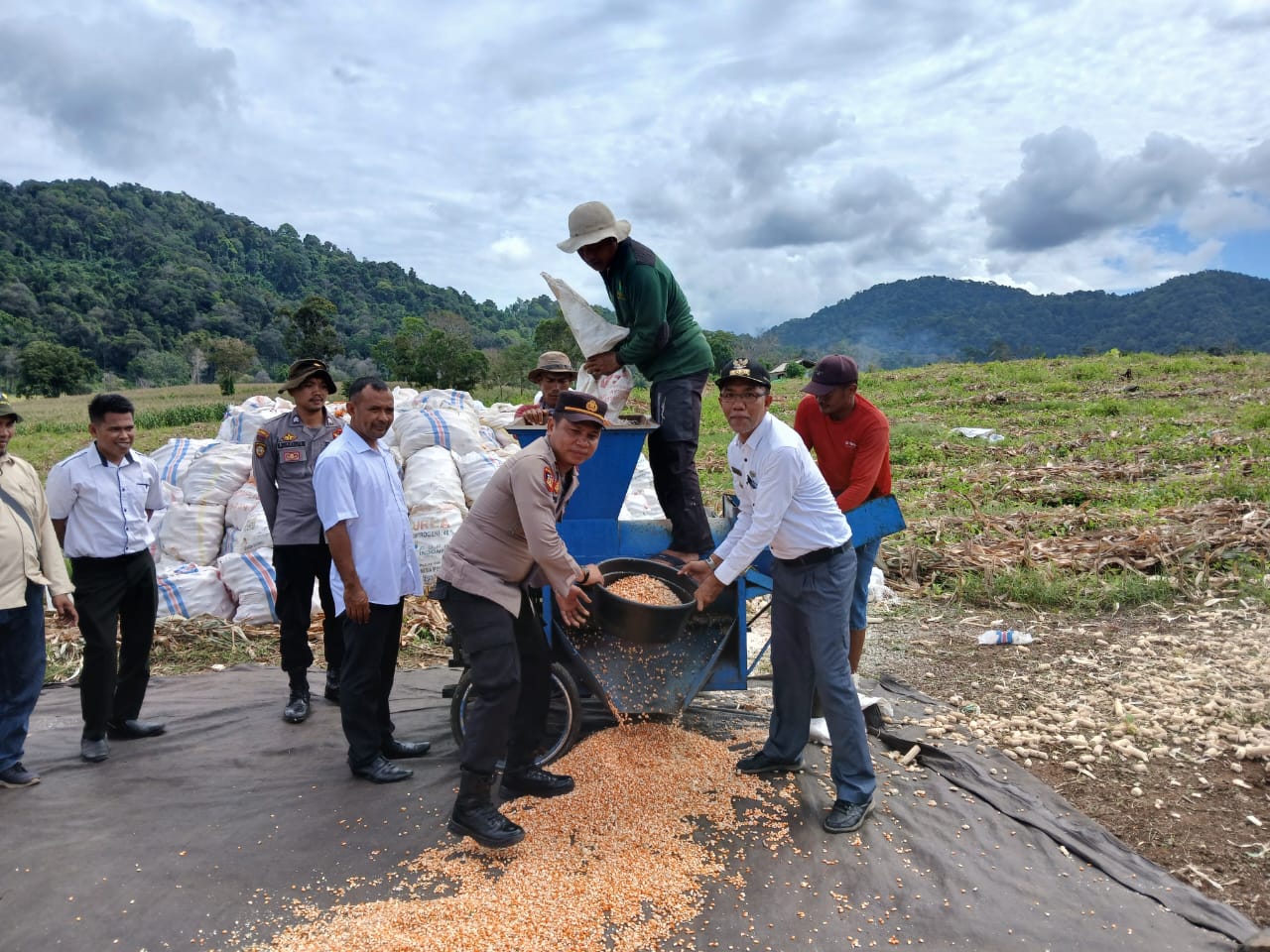 Kasi Humas menerangkan, acara panen jagung bersama merupakan kolaborasi antara Penyuluh Pertanian Lapangan (PPL) dan Polri sebagai bentuk sinergi dalam mendukung program Asta Cita yang bertujuan memperkuat ketahanan dan kemandirian pangan di Indonesia.