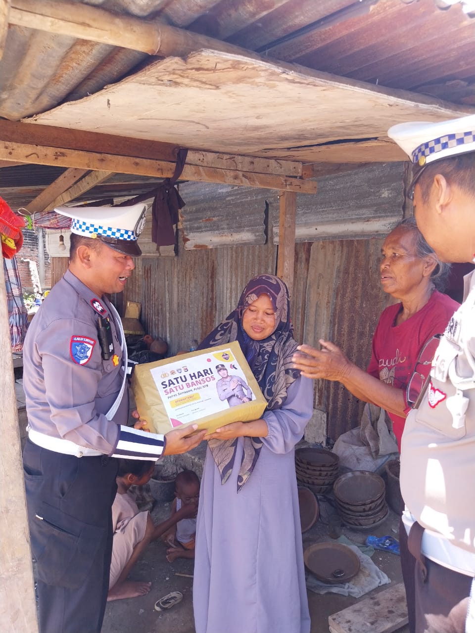 Sumbawa Besar-NTB, Personel Satuan Lalu Lintas (Sat Lantas) Polres Sumbawa terus menunjukkan kepeduliannya terhadap masyarakat melalui program Satu Hari Satu Bansos.