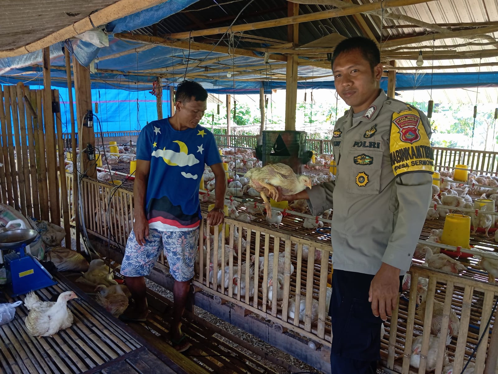 Sumbawa Barat, NTB – Dalam upaya mendukung ketahanan pangan di wilayah Desa Sermong, Brigadir Kamaludin selaku Bhabinkamtibmas Desa Sermong melaksanakan kegiatan monitoring di Dusun Maras, Desa Sermong, Kecamatan Taliwang, Kabupaten Sumbawa Barat. Kegiatan ini dilakukan pada hari Sabtu, 01 Maret 2025 pukul 09.30 WITA, dengan tujuan untuk membantu peternak ayam potong yang menghadapi kesulitan dalam penjualan ayam yang akan dipanen.
