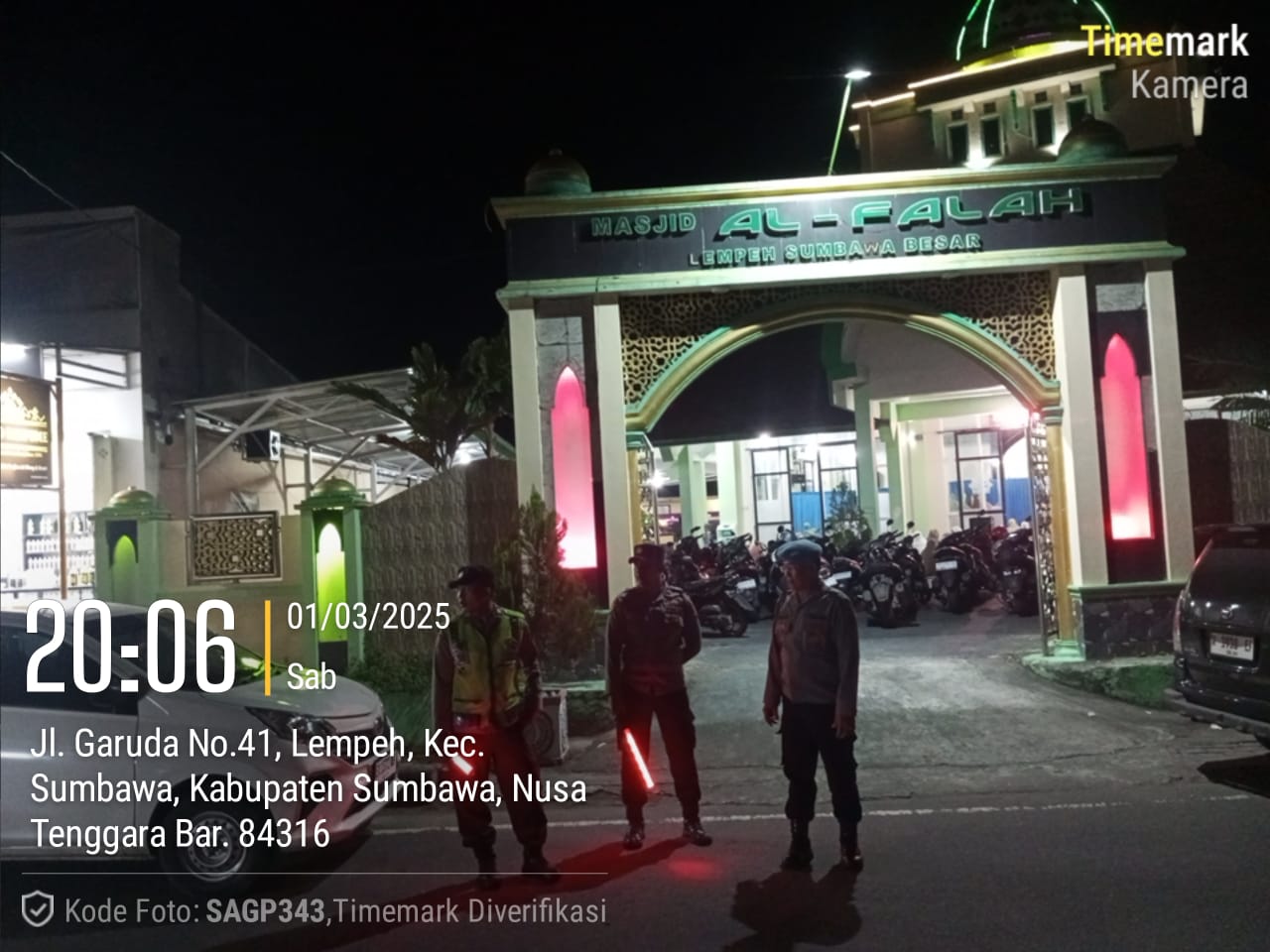 Sumbawa Besar–NTB, Polres Sumbawa bersama Polsek jajaran melaksanakan pengamanan ibadah sholat tarawih di sejumlah masjid yang ada di wilayah Kabupaten Sumbawa. Kegiatan pengamanan ini dilakukan sebagai bagian dari upaya preventif kepolisian untuk menjaga keamanan dan ketertiban masyarakat selama bulan suci Ramadhan.