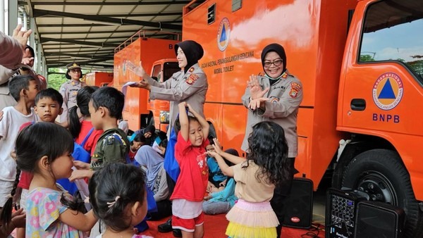 Jakarta. Polda Metro Jaya menurunkan Polwan untuk membantu pemulihan trauma anak-anak yang terdampak banjir di Perumahan Pondok Gede Permai (PGP), Kota Bekasi.