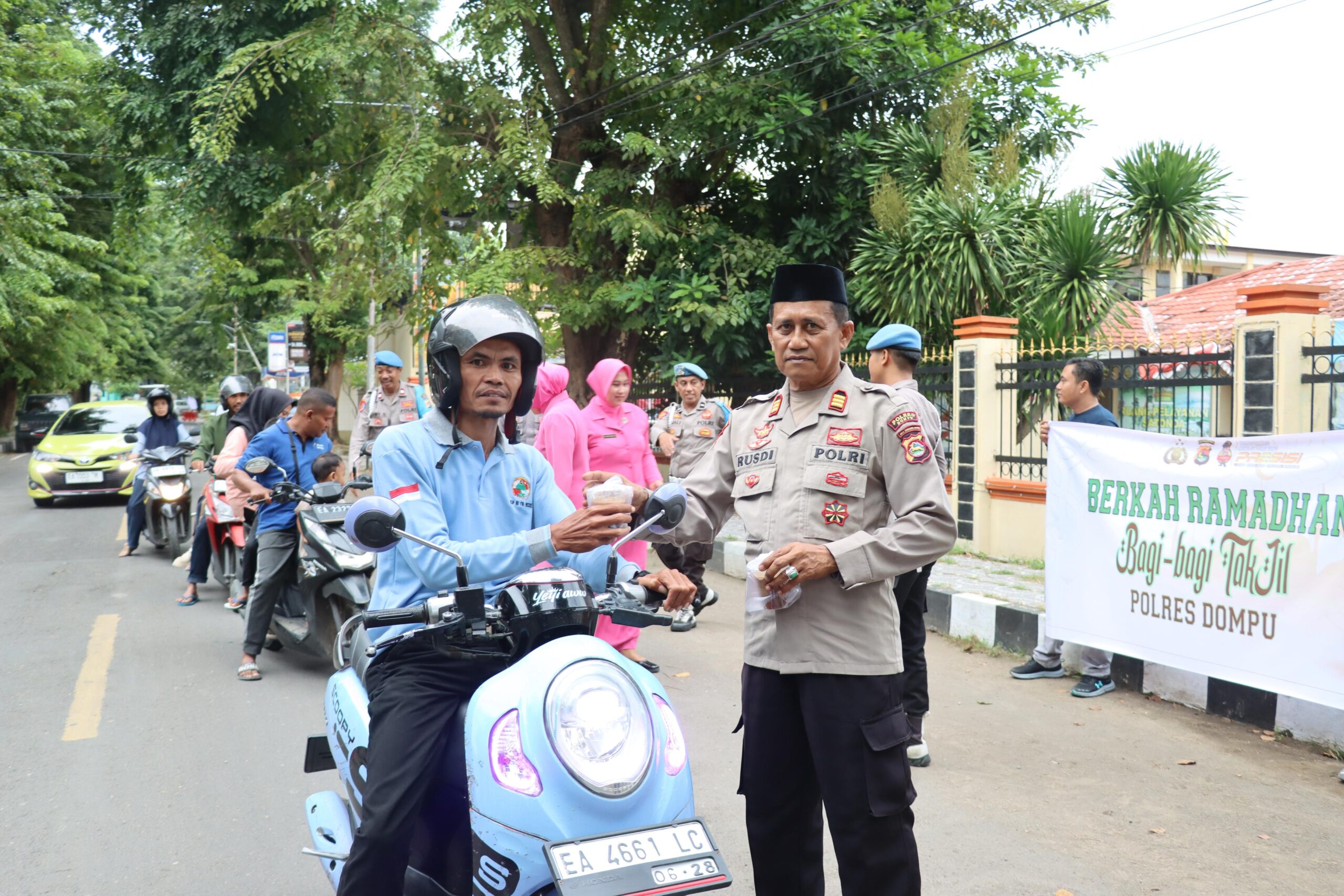 Senja mulai turun perlahan, angin sore membawa kesejukan, dan suara adzan maghrib pun semakin mendekat. Di tengah kesibukan masyarakat yang berlalu-lalang, Polres Dompu hadir dengan kepedulian, membagikan berkah Ramadhan bagi mereka yang tengah berjuang di jalanan.