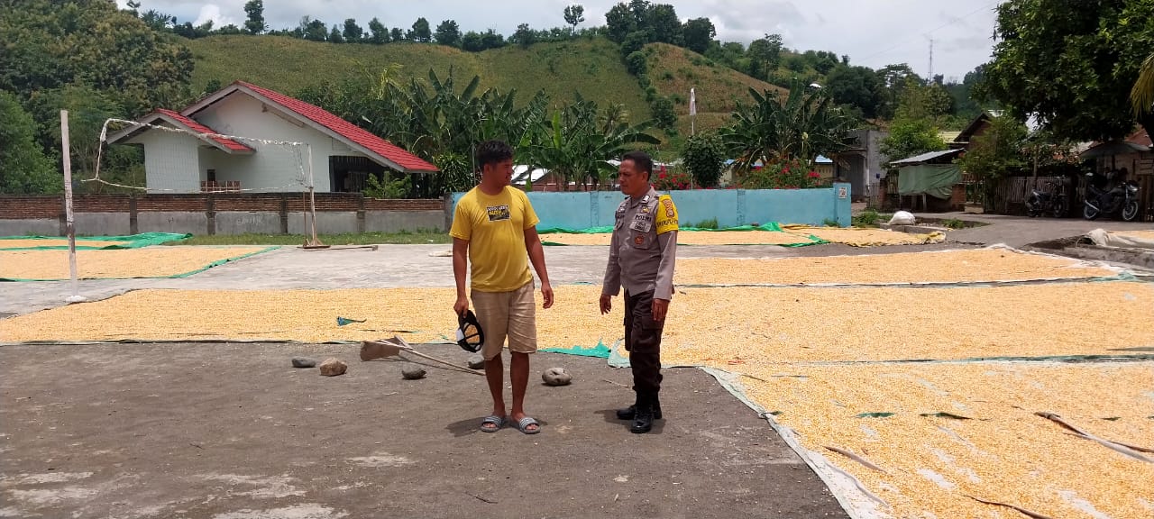 Bhabinkamtibmas Desa Manggenae Pantau Hasil Panen Jagung Warga