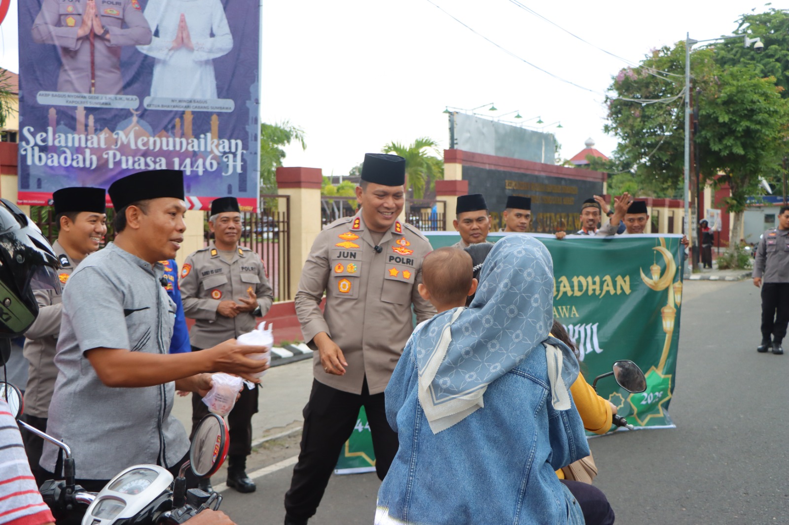 Dalam kegiatan ini, Kapolres Sumbawa bersama rekan-rekan media membagikan 500 paket takjil kepada masyarakat sekitar, sebagai bentuk kepedulian Polri terhadap masyarakat di bulan Ramadan yang penuh berkah. Pembagian takjil tersebut disambut antusias oleh warga yang hadir di lokasi, yang dengan sabar menunggu waktu berbuka puasa.