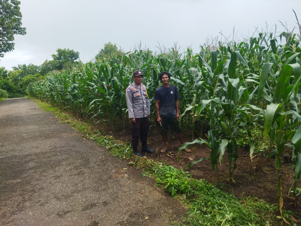 Dalam kesempatan tersebut, Bhabinkamtibmas mengunjungi lahan pertanian milik Pak Sahwan yang telah ditanami jagung. Selain memantau kondisi pertanian, ia juga mengajak warga untuk memanfaatkan lahan pertanian maupun pekarangan rumah guna bercocok tanam sebagai upaya mendukung ketahanan pangan nasional.