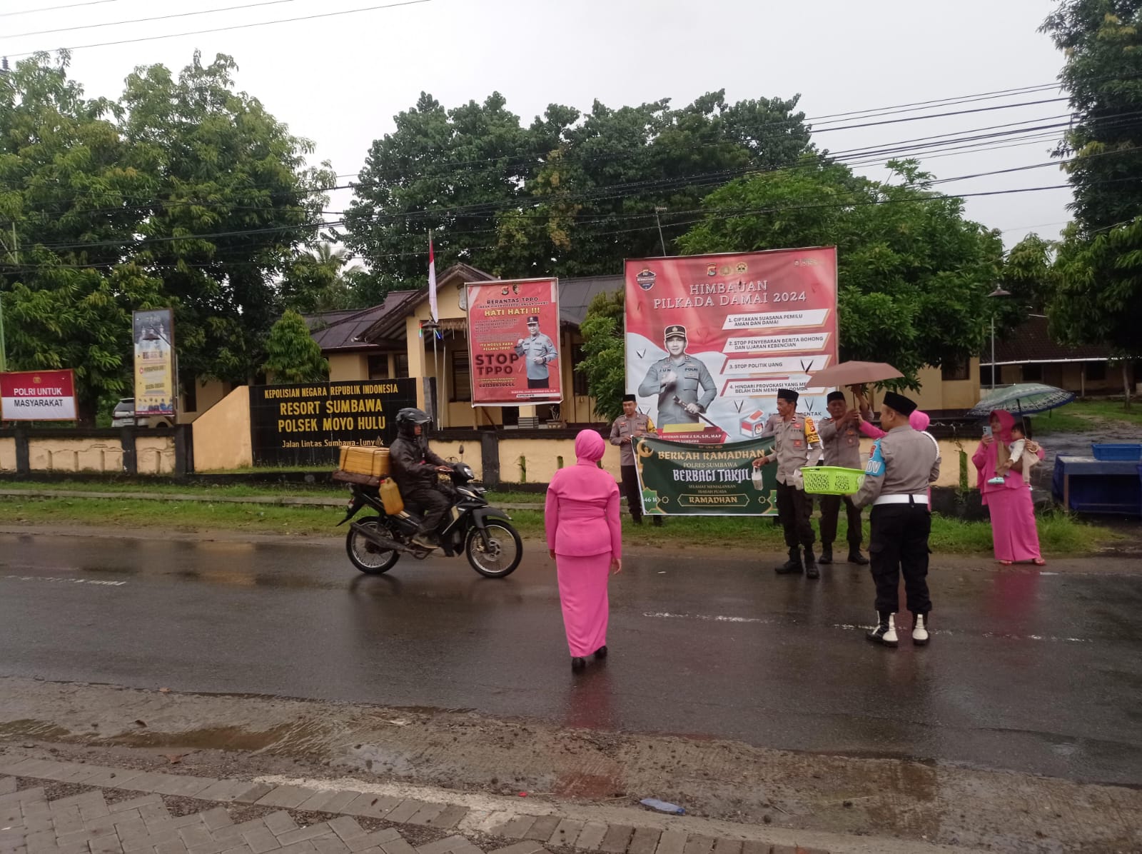 Takjil yang terdiri dari makanan dan minuman dibagikan kepada warga yang sedang dalam perjalanan menjelang waktu berbuka puasa. Kegiatan ini bertujuan untuk memberikan kemudahan bagi umat Muslim yang sedang berpuasa serta mempererat hubungan silaturahmi antara Polri dan masyarakat.