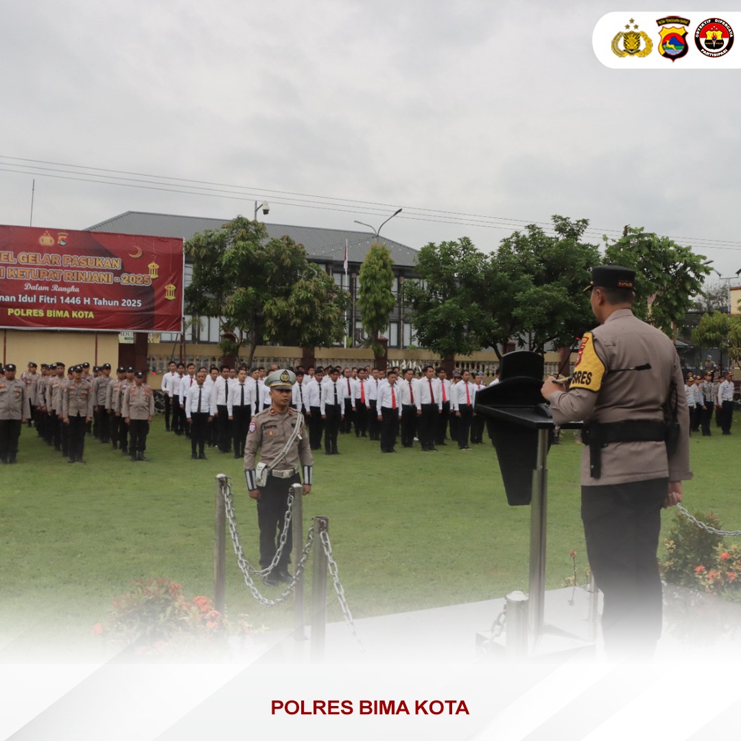 Kota Bima, NTB (31 Maret 2025) – Polres Bima Kota menggelar apel gelar pasukan dalam rangka pengamanan malam takbiran di wilayah hukum Polres Bima Kota. Apel tersebut dipimpin langsung oleh Kapolres Bima Kota AKBP Didik Putra Kuncoro, S.I.K., M.Si., yang berlangsung di Lapangan Apel Presisi Polres Bima Kota pada Minggu (30/3/2025) sore.