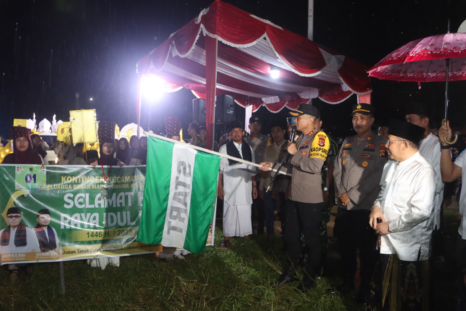 Lombok Utara,– Ribuan masyarakat Kabupaten Lombok Utara antusias mengikuti Pawai Malam Takbiran dalam rangka menyambut Hari Raya Idul Fitri 1446 H yang berlangsung di Lapangan Tioq Tata Tunaq, Kecamatan Tanjung, Minggu malam (30/3). Meski hujan mengguyur kawasan tersebut, semangat para peserta pawai tetap membara dalam mengarak lampion mengelilingi kota.