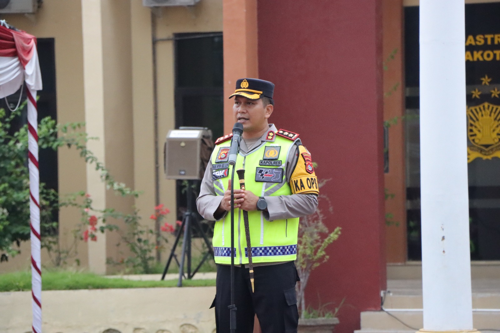 Apel yang dipimpin langsung oleh Kapolres Sumbawa, AKBP Bagus Nyoman Gede Junaedi SH, S.IK, M.AP ini dihadiri oleh Pejabat Utama (PJU) dan personel gabungan dari TNI-Polri. Dalam kesempatan tersebut, Kapolres menyampaikan bahwa sebanyak 127 personel gabungan dikerahkan untuk mengamankan kegiatan malam takbiran.