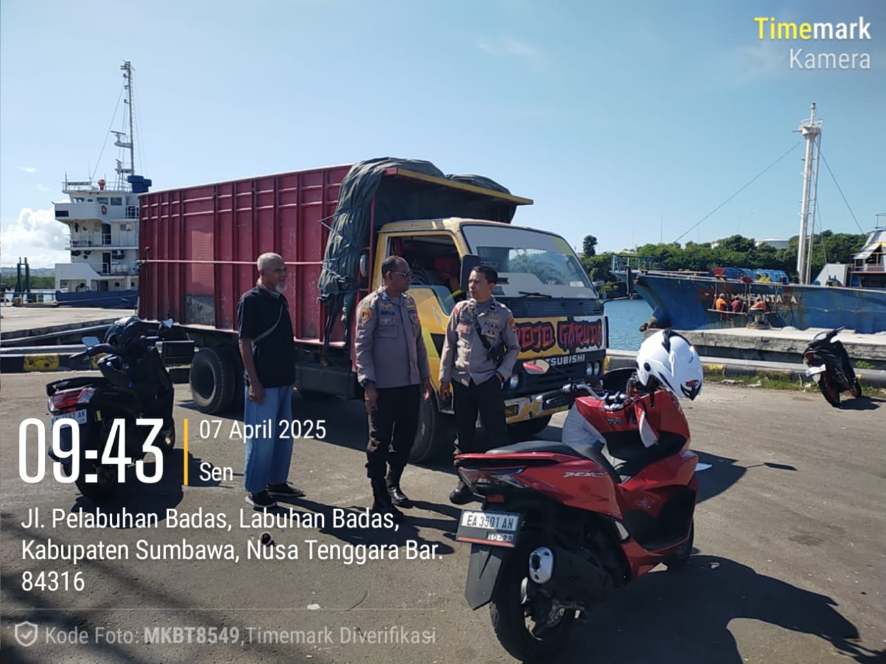Sumbawa Besar-NTB, Personel Polsek Labuhan Badas, yang berada di bawah jajaran Polres Sumbawa Polda NTB, melaksanakan patroli rutin di Pelabuhan Badas, Senin (07/04/25).
