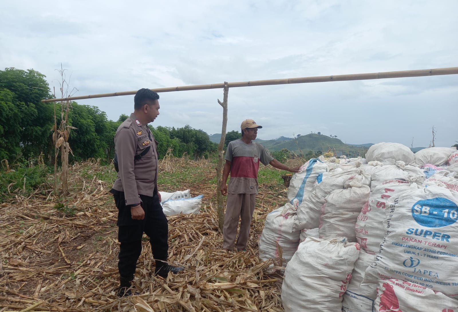 Kegiatan yang berlangsung sejak pukul 11.00 WITA ini dilakukan di lahan pertanian milik Bapak Mahdin, seorang petani jagung yang tengah memanen hasil tanamnya. Kehadiran Bhabinkamtibmas tidak hanya sebagai bentuk pengawasan dan pendampingan, tetapi juga sebagai langkah sinergis antara Polri dan masyarakat dalam menjaga stabilitas sektor pertanian yang menjadi tulang punggung perekonomian desa.