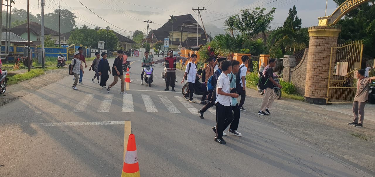 Sumbawa Barat, NTB – Sebagai bentuk pelayanan terhadap keamanan dan kenyamanan siswa, Kapolsek Seteluk, AKP Siswoyo, S.H., bersama anggotanya menggelar pelayanan penjagaan pada jalan raya di sejumlah titik sekolah yang dianggap rawan terhadap arus lalu lintas jalan, Rabu (09/04/2025).