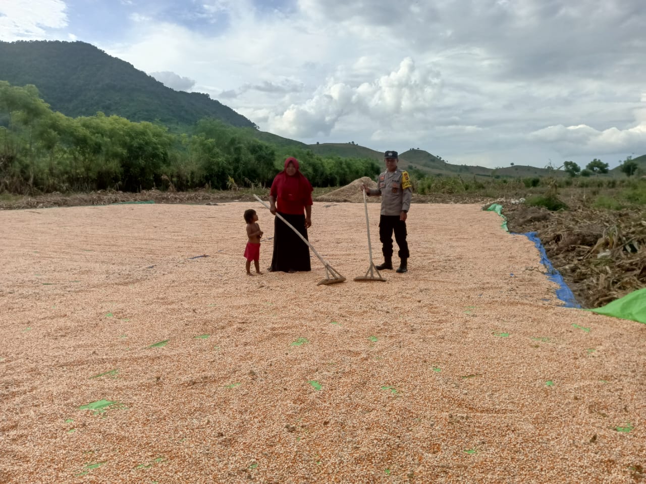 Bhabinkamtibmas Desa Riwo Pantau Panen Jagung dalam Mendukung Ketahanan Pangan Nasional