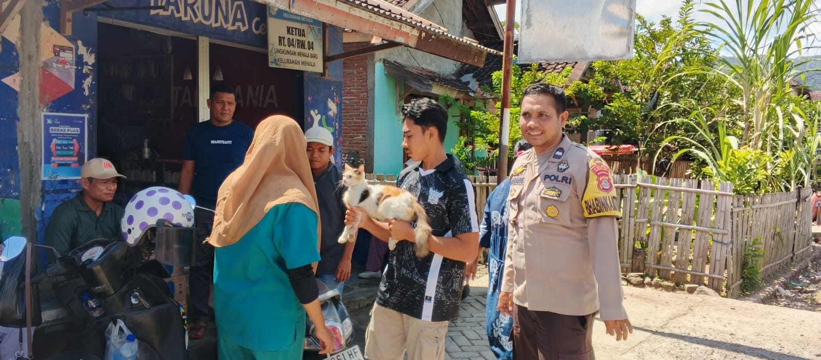 Kapolres Sumbawa Barat, AKBP Zulkarnain, S.I.K., melalui Kasi Humas, AKP Zainal Abidin, S.H., menyampaikan bahwa Bhabinkamtibmas Kelurahan Menala turut serta mendampingi kegiatan dari Dinas Keswan Kecamatan Taliwang dalam pelaksanaan vaksinasi hewan peliharaan seperti anjing dan kucing.